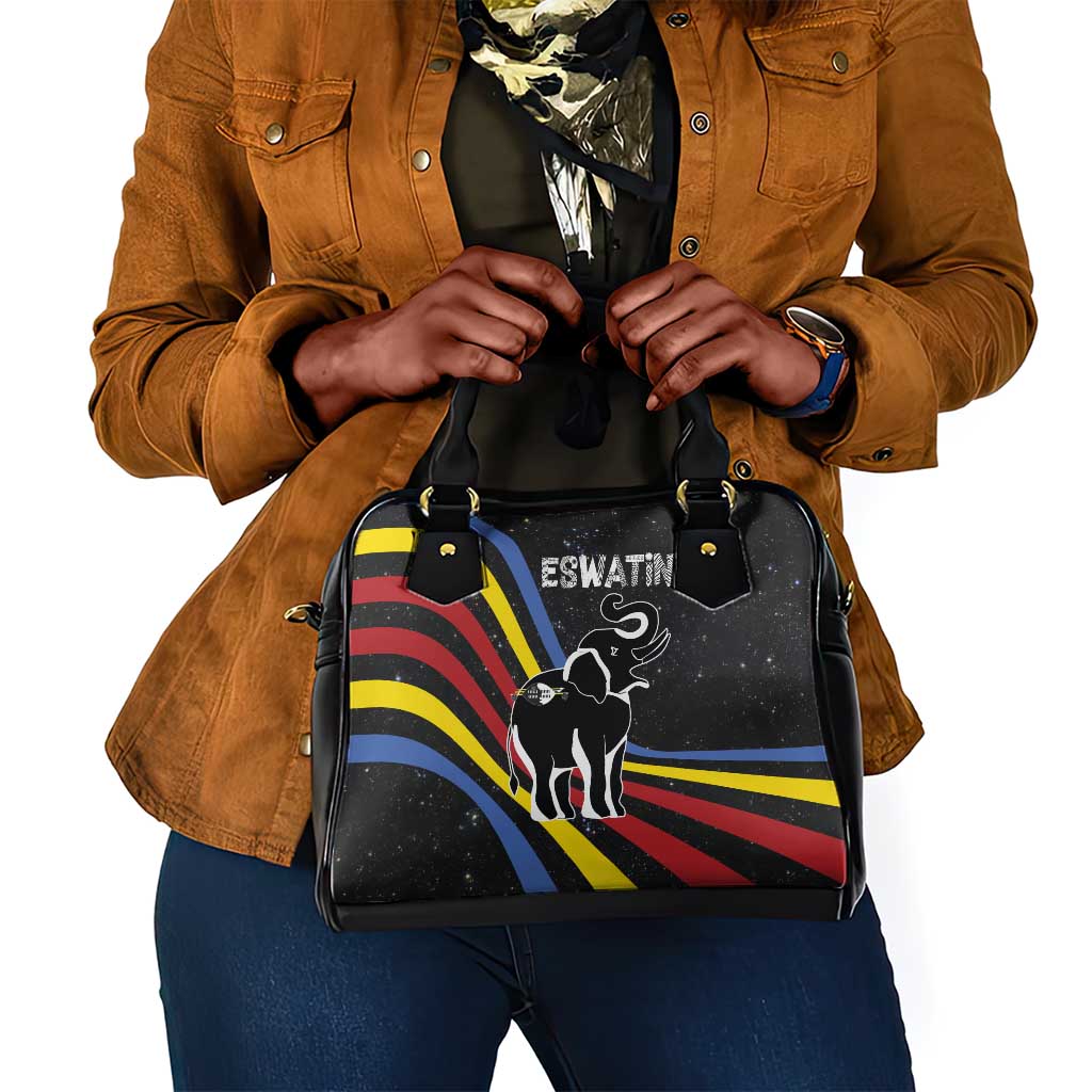 Eswatini Elephant Shoulder Handbag Swazi Flag Colors And Cosmic Background