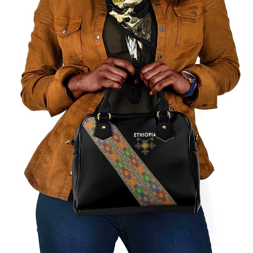Ethiopia Saba Kemis Sash Style Shoulder Handbag Black Color