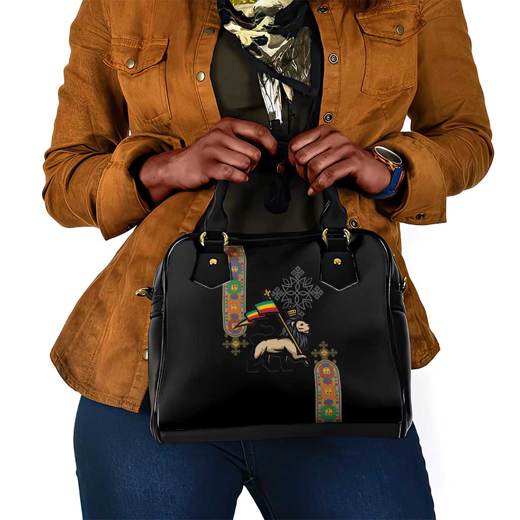 Ethiopia Saba Kemis Shoulder Handbag Lion Of Judah Black Color