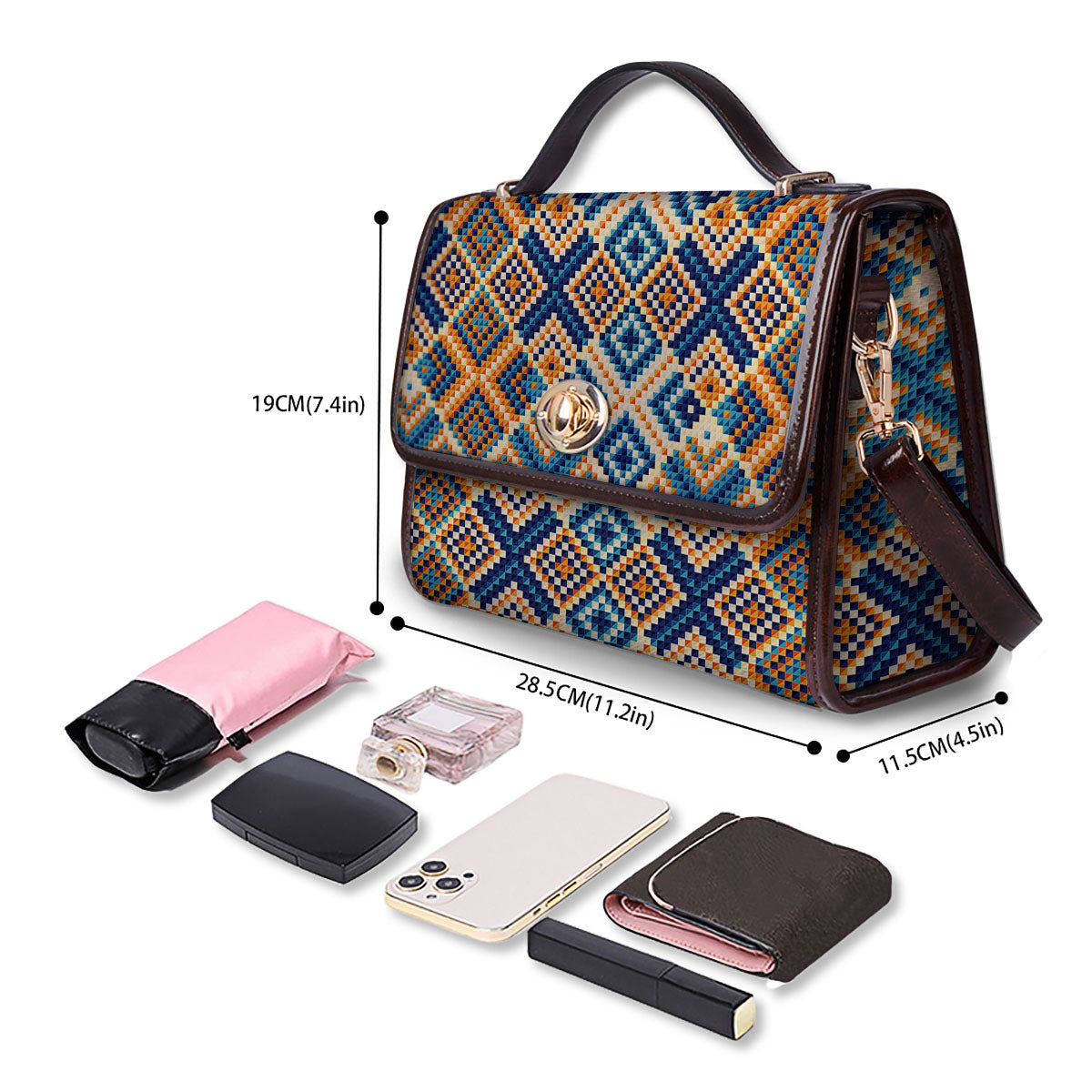 Size: 19 × 28.5 × 11.5 cm (7.4 × 11.2 × 4.5 in) — compact yet roomy enough for all your daily essentials.