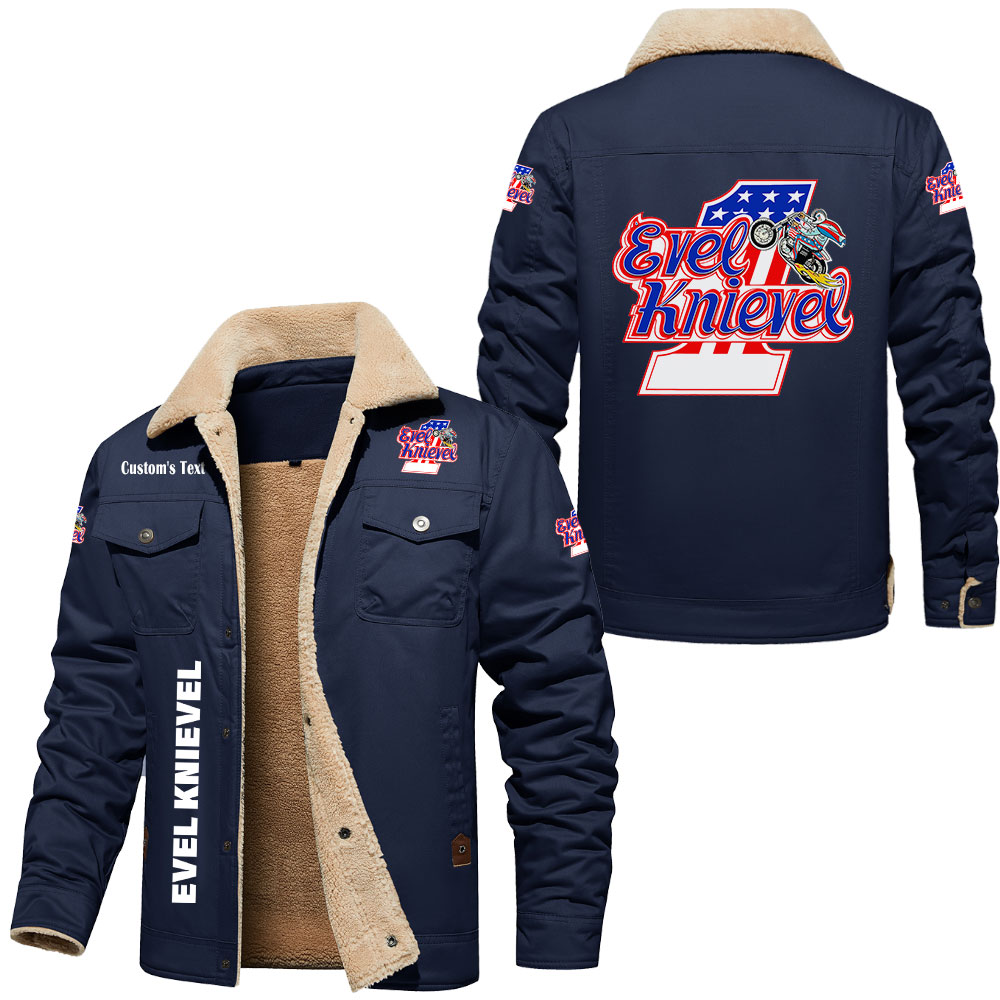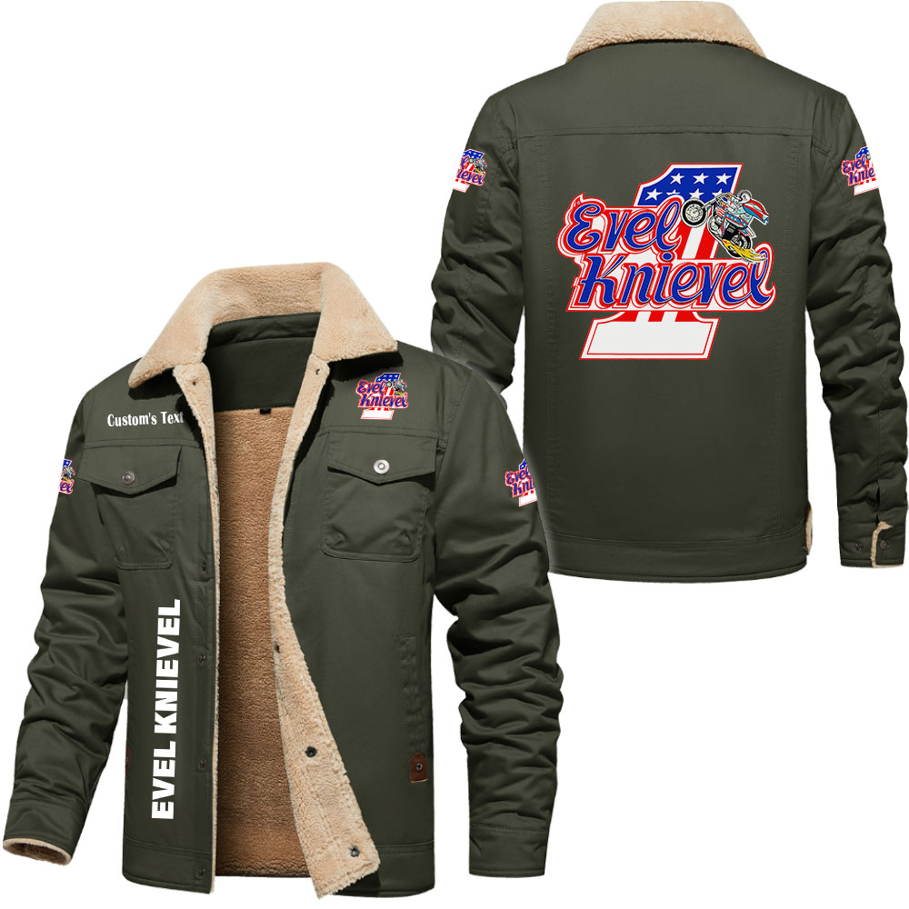 Evel Knievel Motorcycles Logo Custom Text Cargo Fleece Lined Cotton Jacket