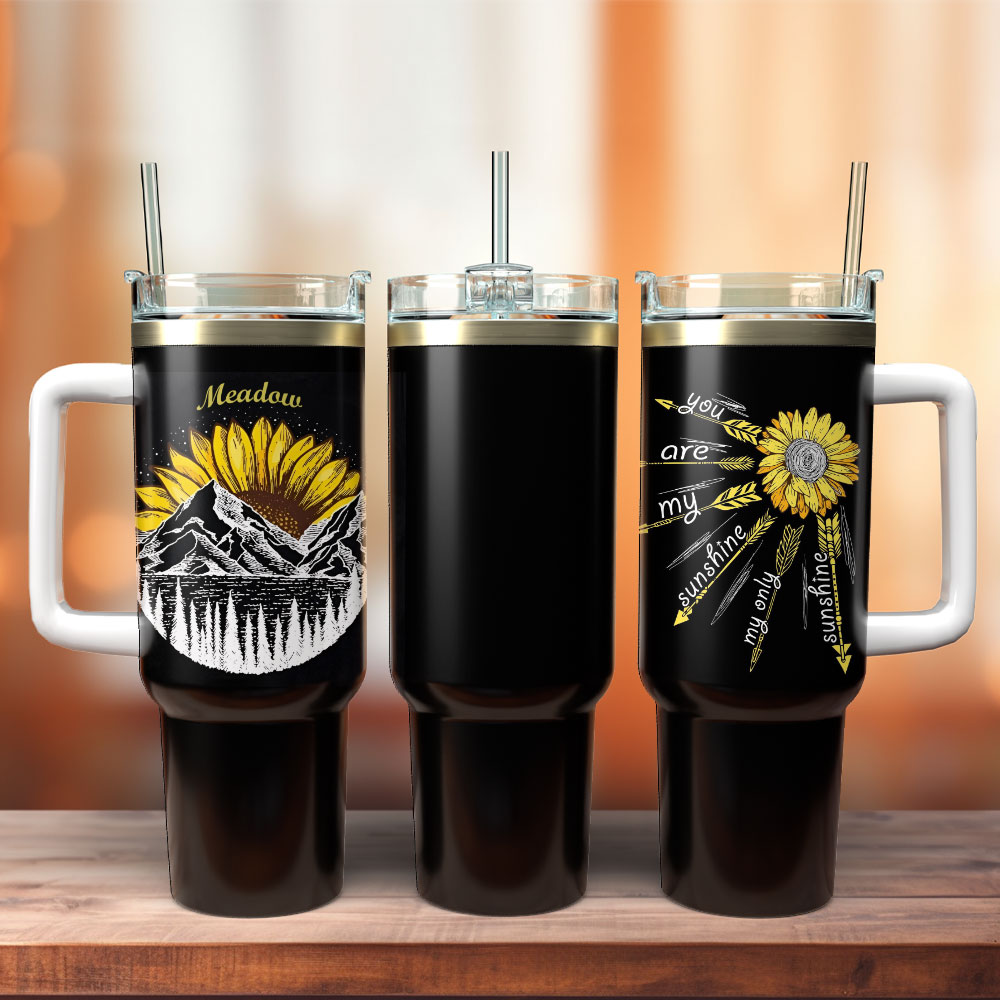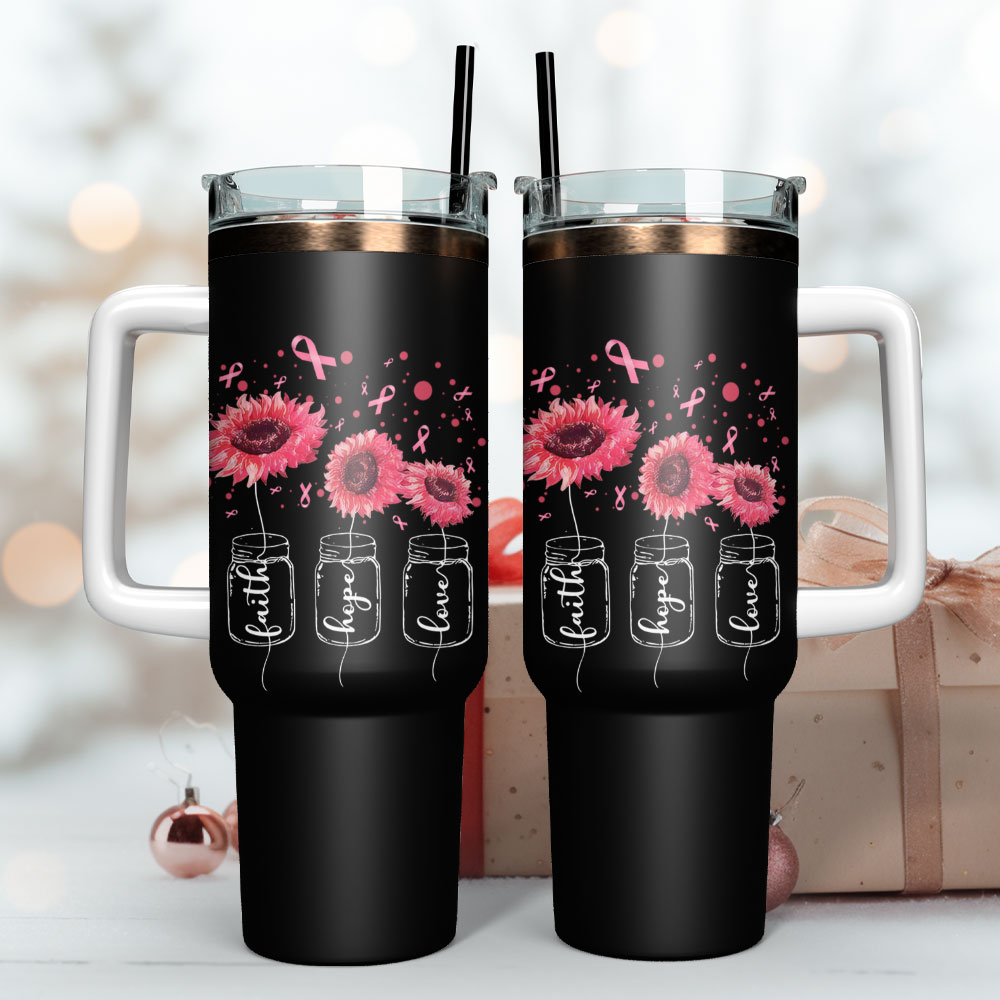 Faith Hope Love Pink Sunflower Artwork Custom Stanley Quencher 40Oz Stainless Steel Tumbler With Handle