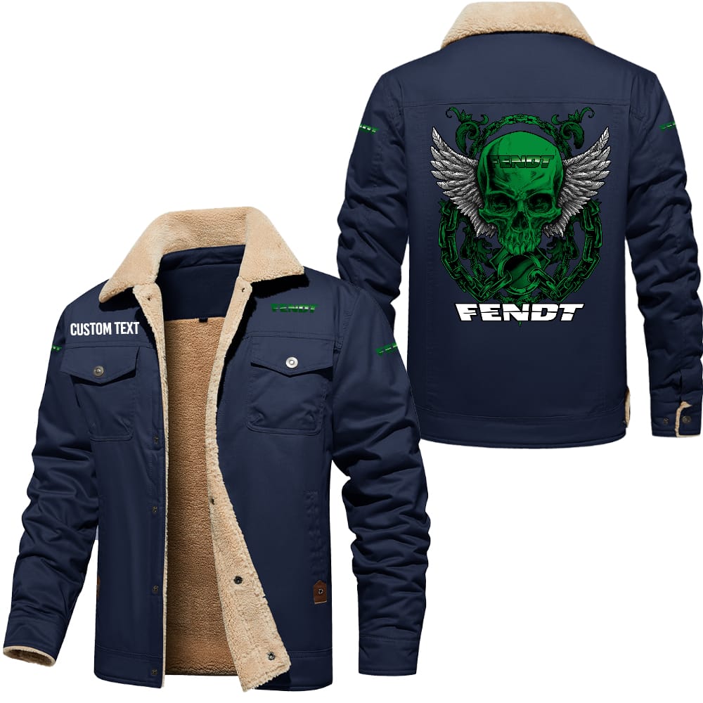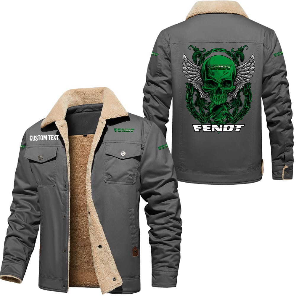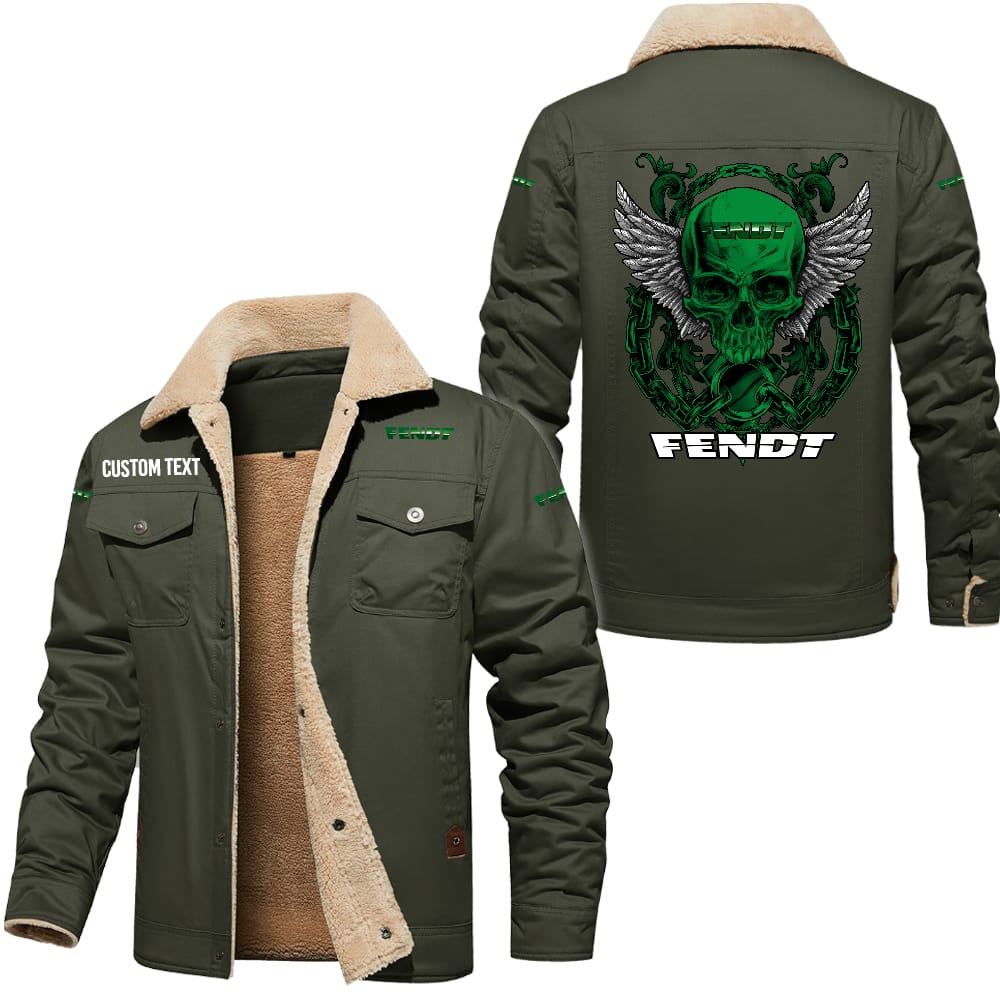 Fendt Custom Name Skull Design Cargo Fleece Lined Cotton Jacket
