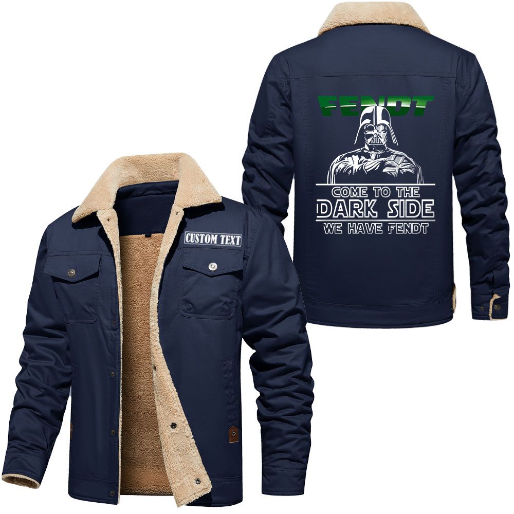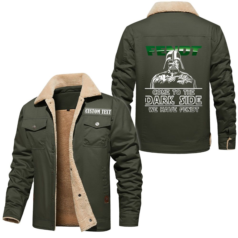 Fendt Logo Custom Name Cargo Fleece Lined Cotton Jacket Personalized Outerwear with Dark Side Star Wars Design