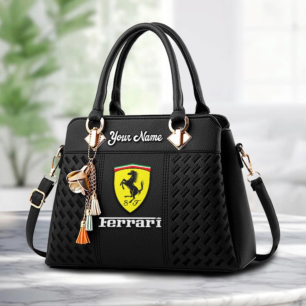 Fendt Logo Personalized PU Leather Handbag Custom Name For Women