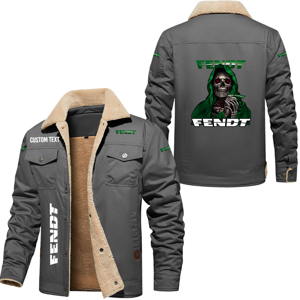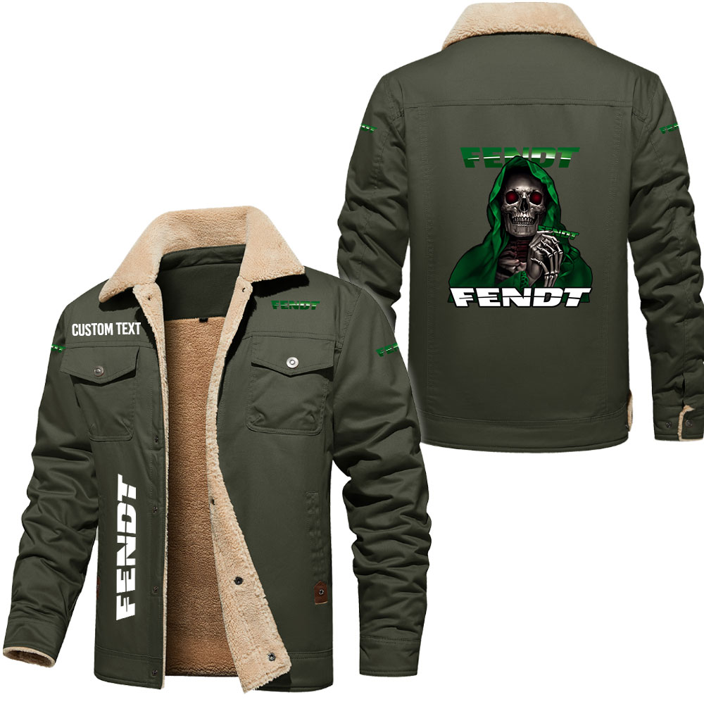 Fendt Skull Art Print Custom Name Cargo Fleece Lined Cotton Jacket