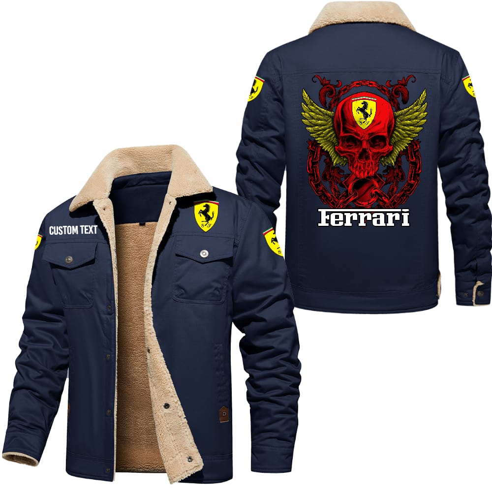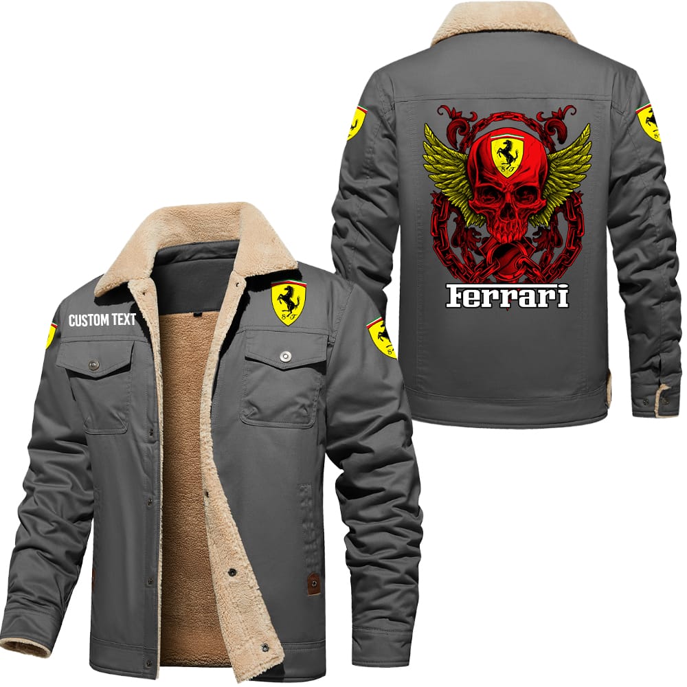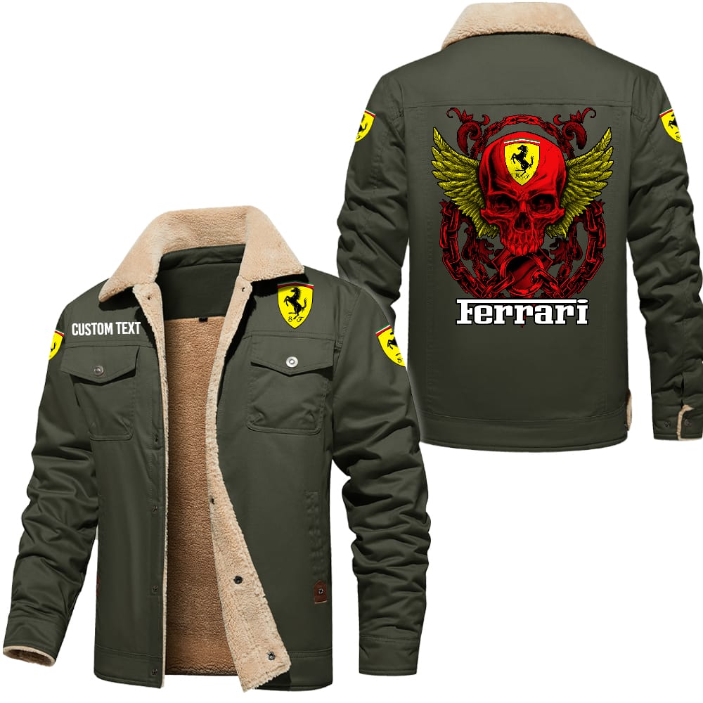 Ferrari Custom Name Skull Design Cargo Fleece Lined Cotton Jacket