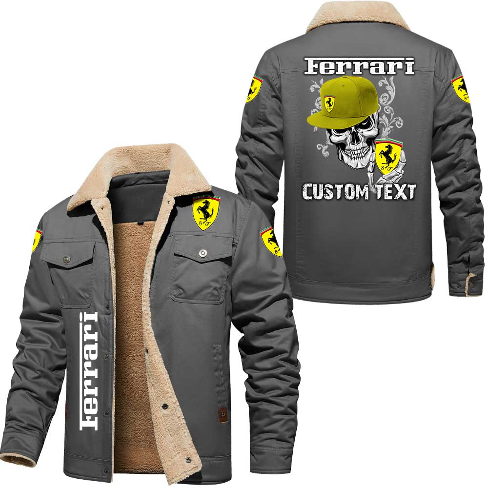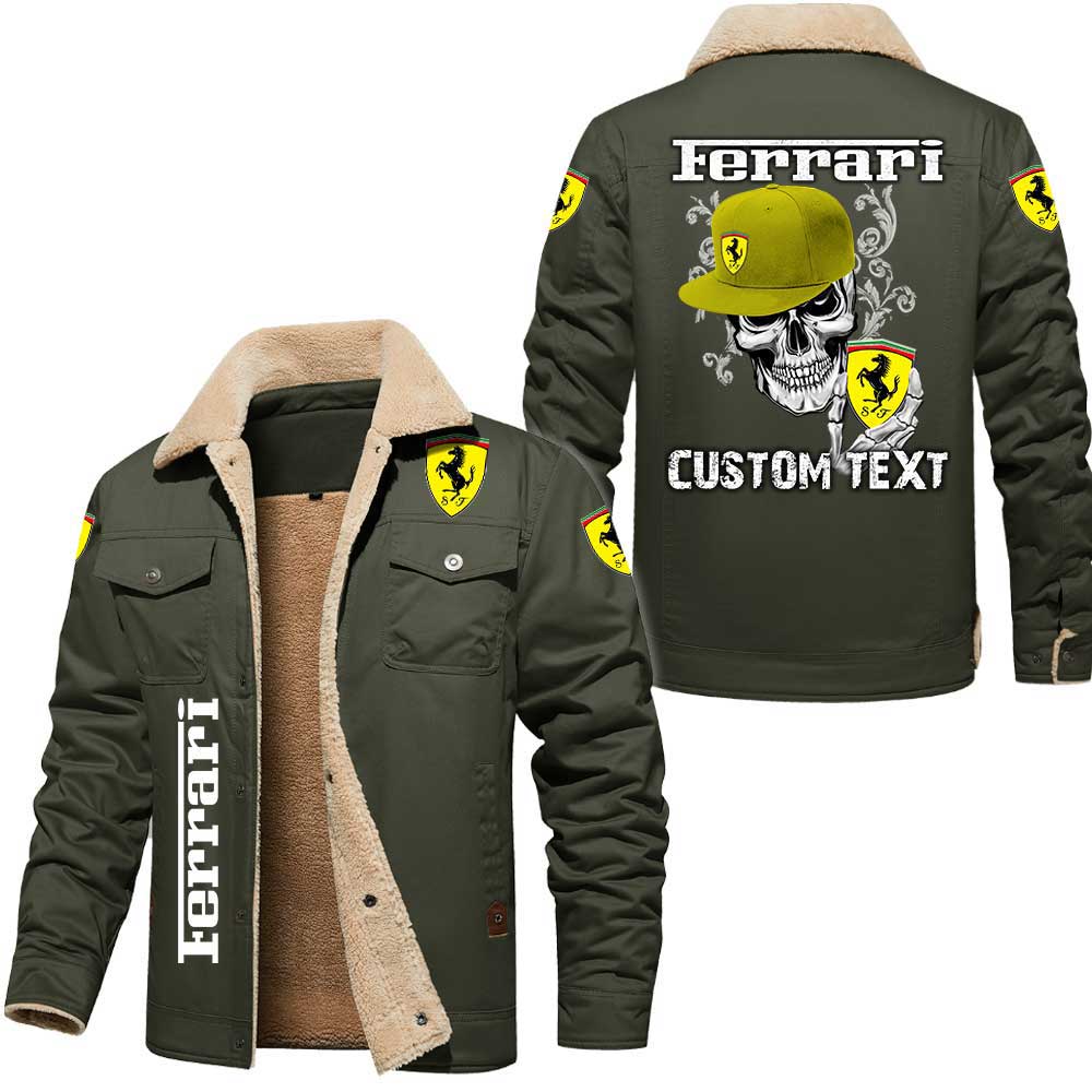 Ferrari Skull Custom Name Cargo Fleece Lined Cotton Jacket
