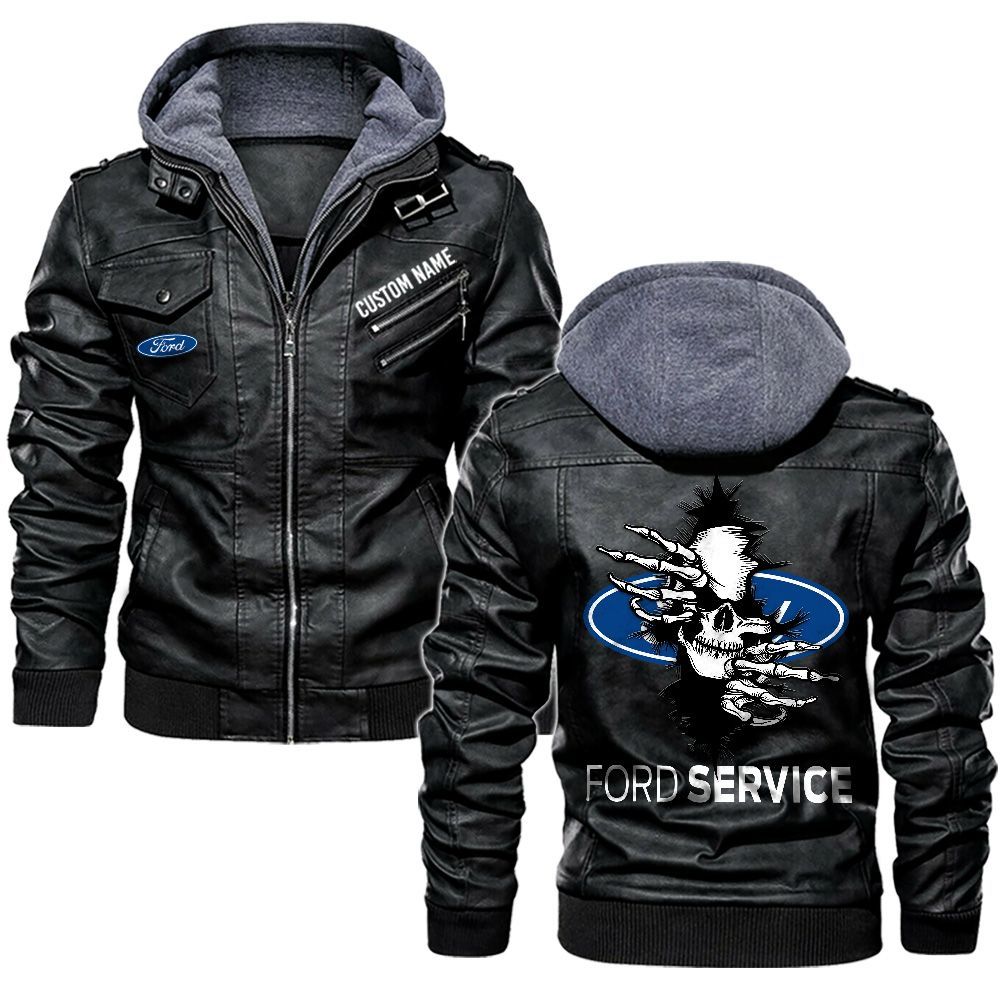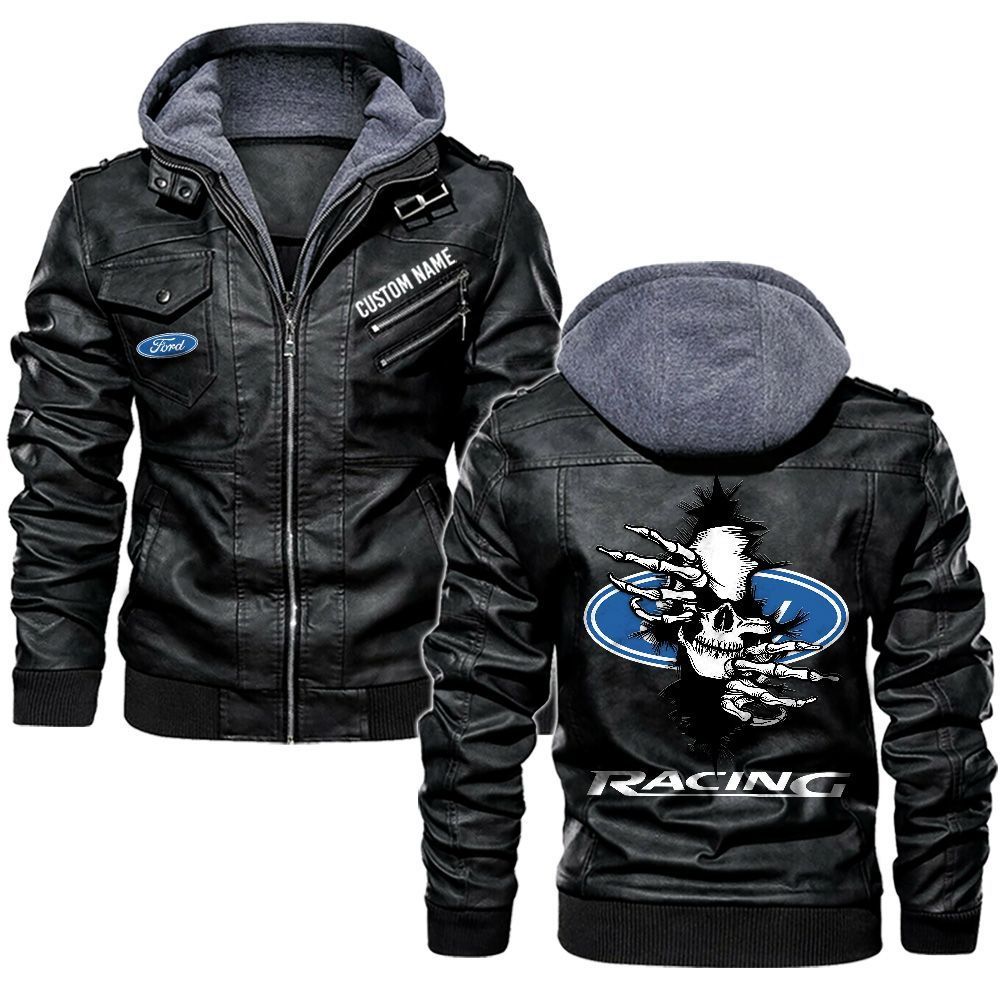 Festool Custom Name Skull Biker Car Driver Personalized Hooded Leather Jacket For Men Women