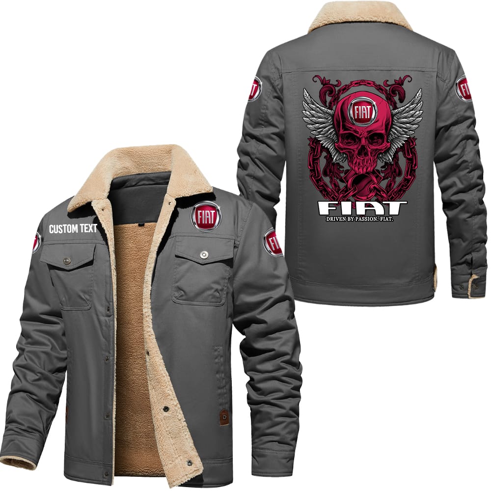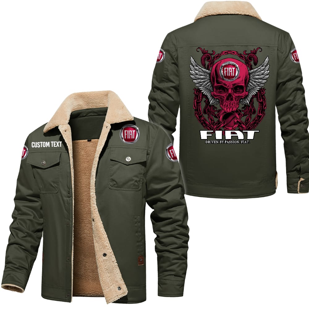 Fiat Driven By Passion Custom Name Skull Design Cargo Fleece Lined Cotton Jacket