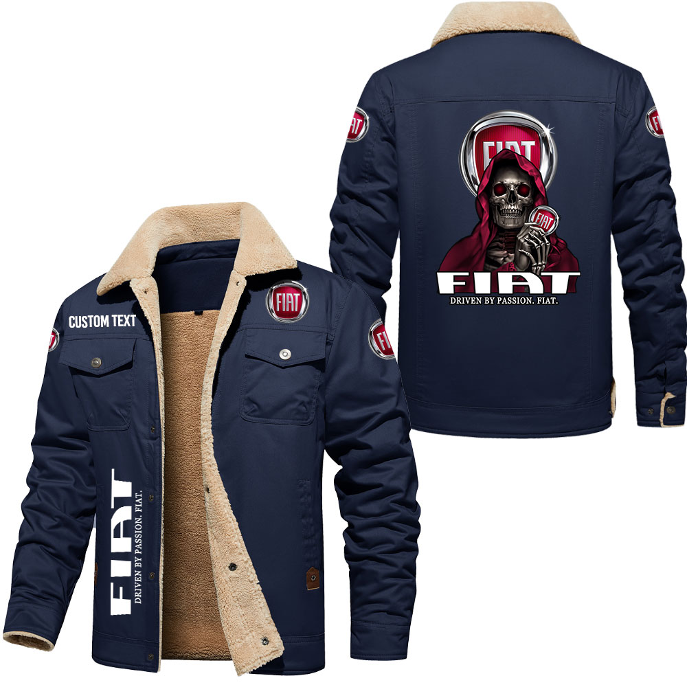 Fiat Driven By Passion Skull Art Print Custom Name Cargo Fleece Lined Cotton Jacket