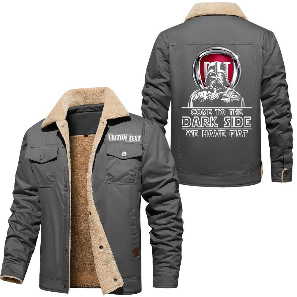 Fiat Logo Custom Name Cargo Fleece Lined Cotton Jacket Personalized Outerwear with Dark Side Star Wars Design