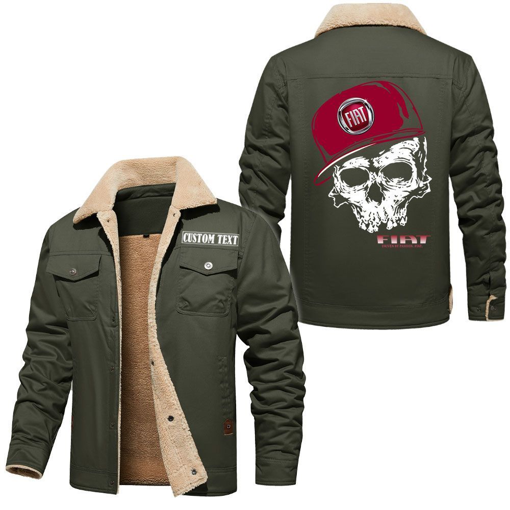 Fiat Logo Custom Name Cargo Fleece Lined Cotton Jacket Personalized Outerwear with Skull Design