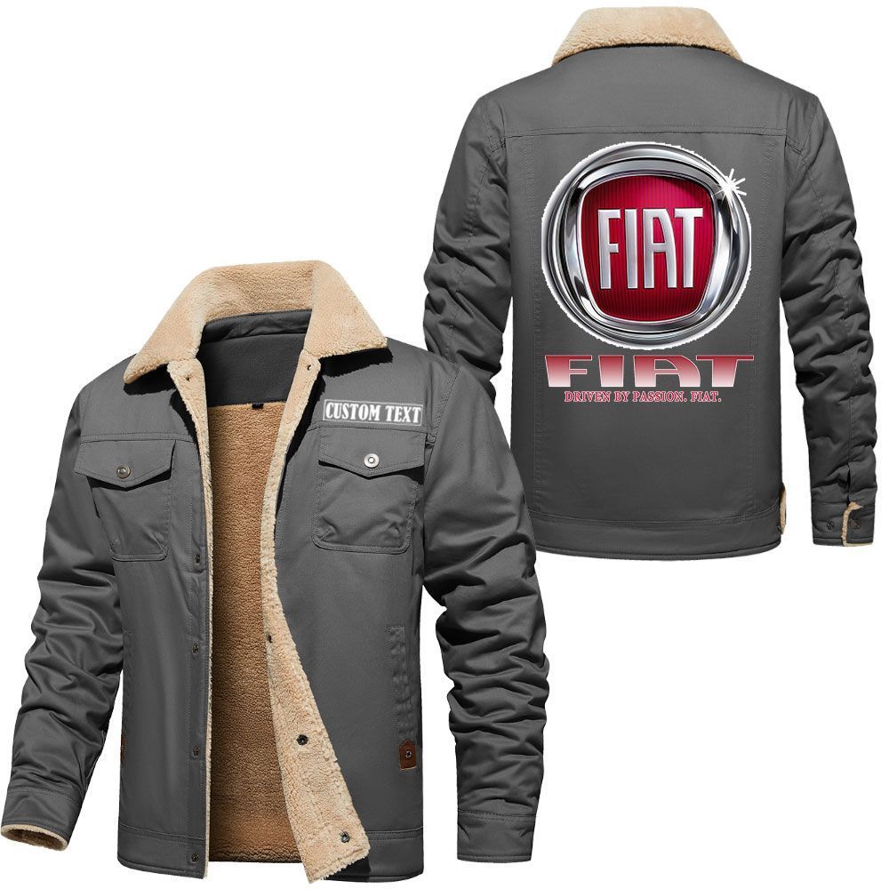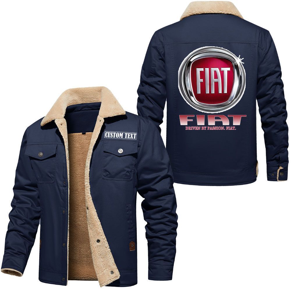 Fiat Logo Custom Name Cargo Fleece Lined Cotton Jacket Stylish Warm Personalized Outerwear