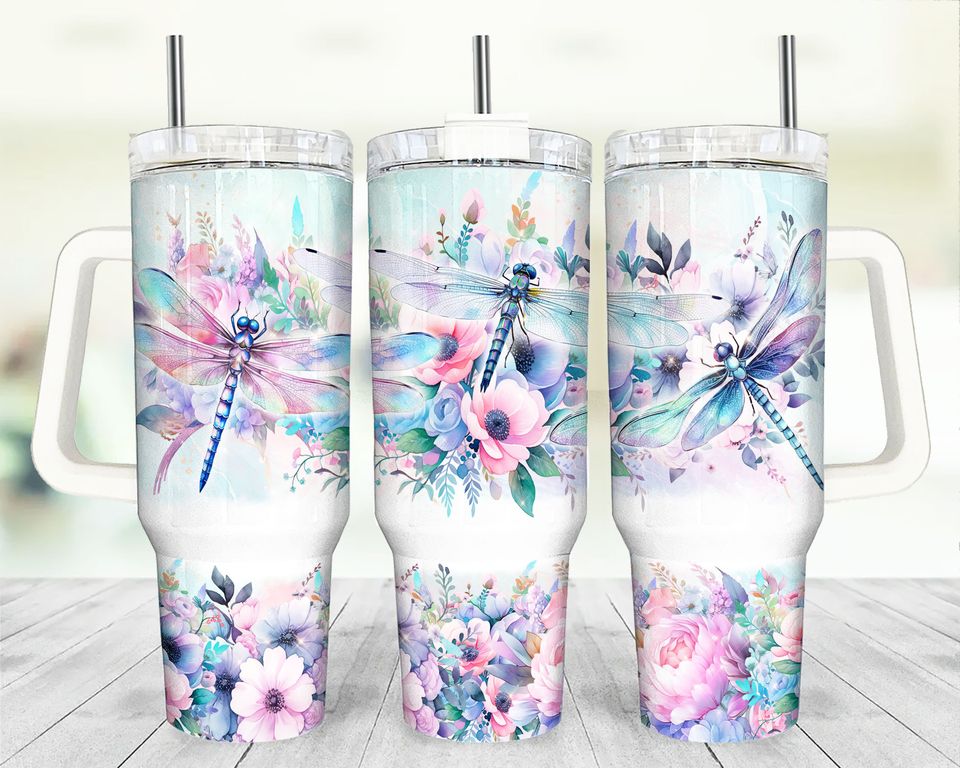 Floral Dragonfly Custom Stanley Quencher 40Oz Stainless Steel Tumbler