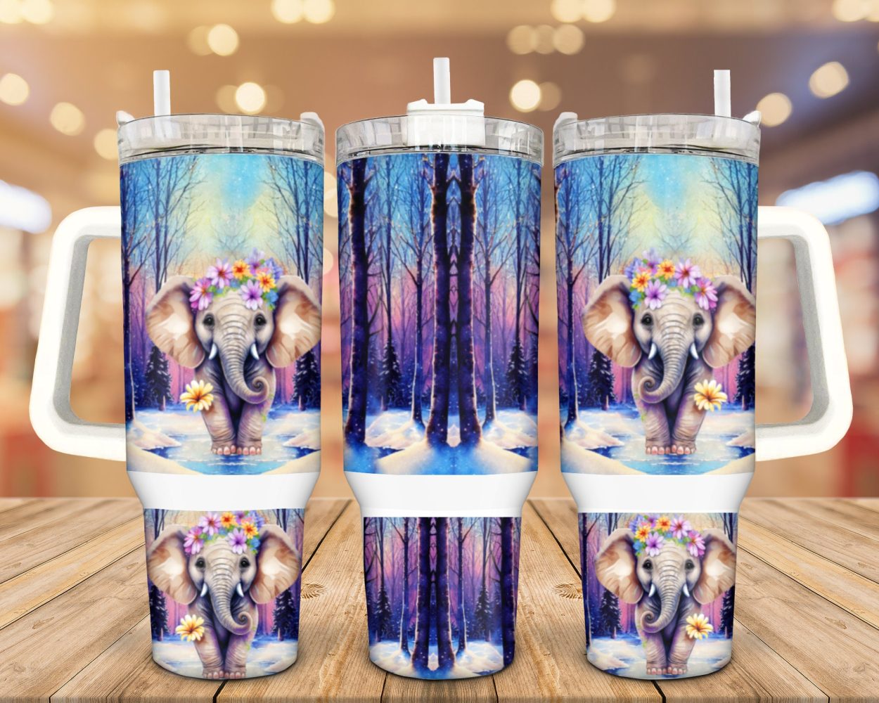 Floral Elephant Custom Stanley Quencher 40Oz Stainless Steel Tumbler With Handle