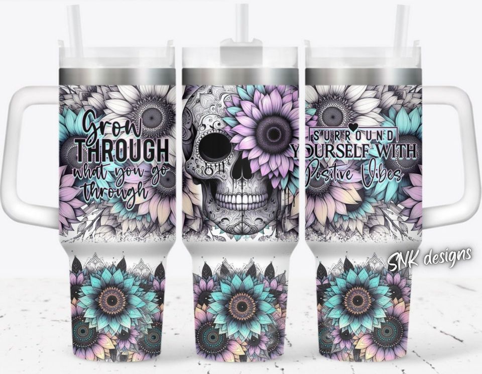 Floral Skull Custom Stanley Quencher 40Oz Stainless Steel Tumbler