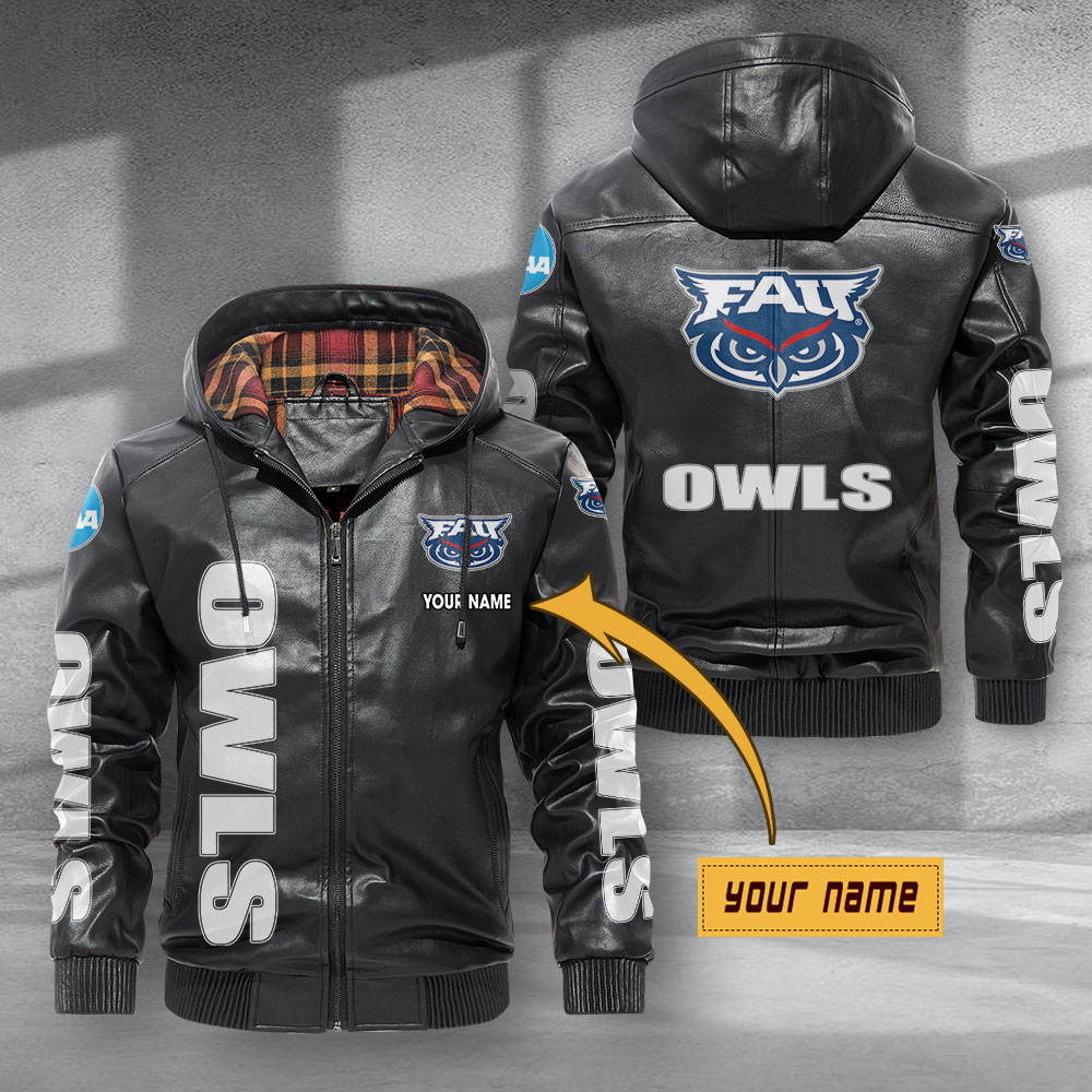Florida Atlantic Owls Leather Hoodie Jacket Football Leather Jacket