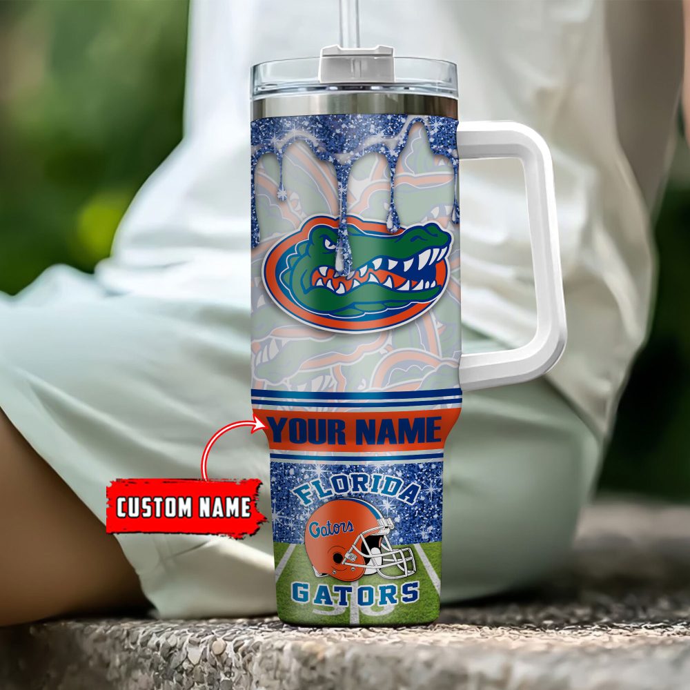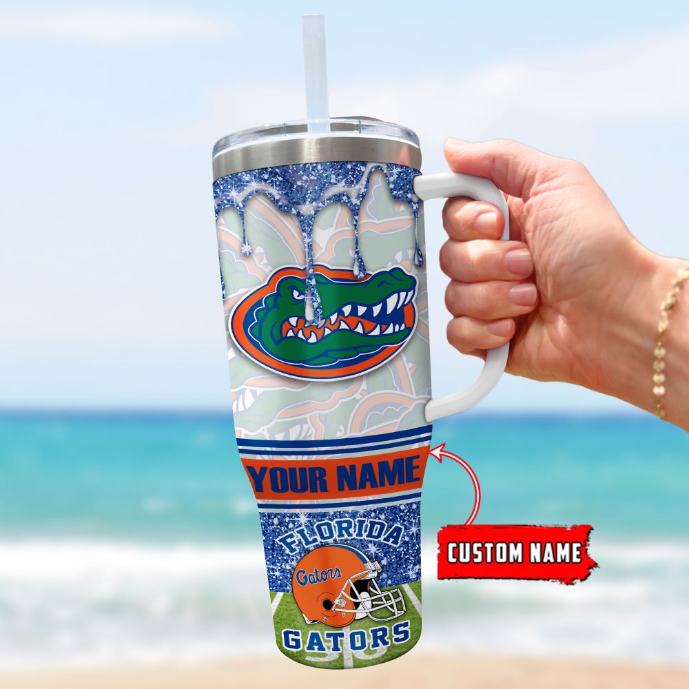 Florida Gators Ncaa Glitter Custom Stanley Quencher 40Oz Stainless Steel Tumbler With Handle