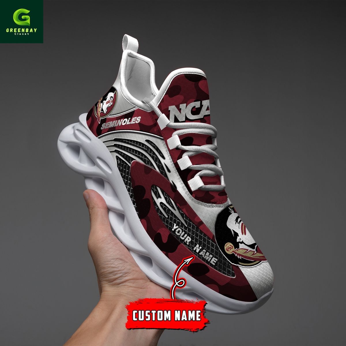Florida State Red & Silver Seminoles Red Max Soul Shoes Sneakers Printed White And Black Sole For Men And Women
