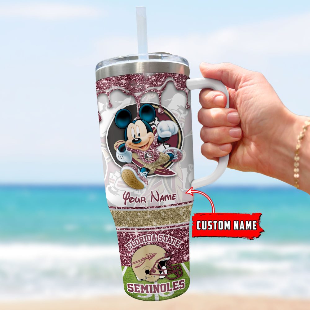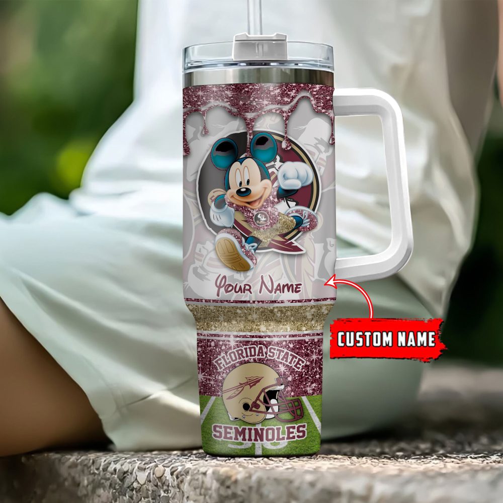 Florida State Seminoles Ncaa Mickey Mouse Glitter Custom Stanley Quencher 40Oz Stainless Steel Tumbler With Handle