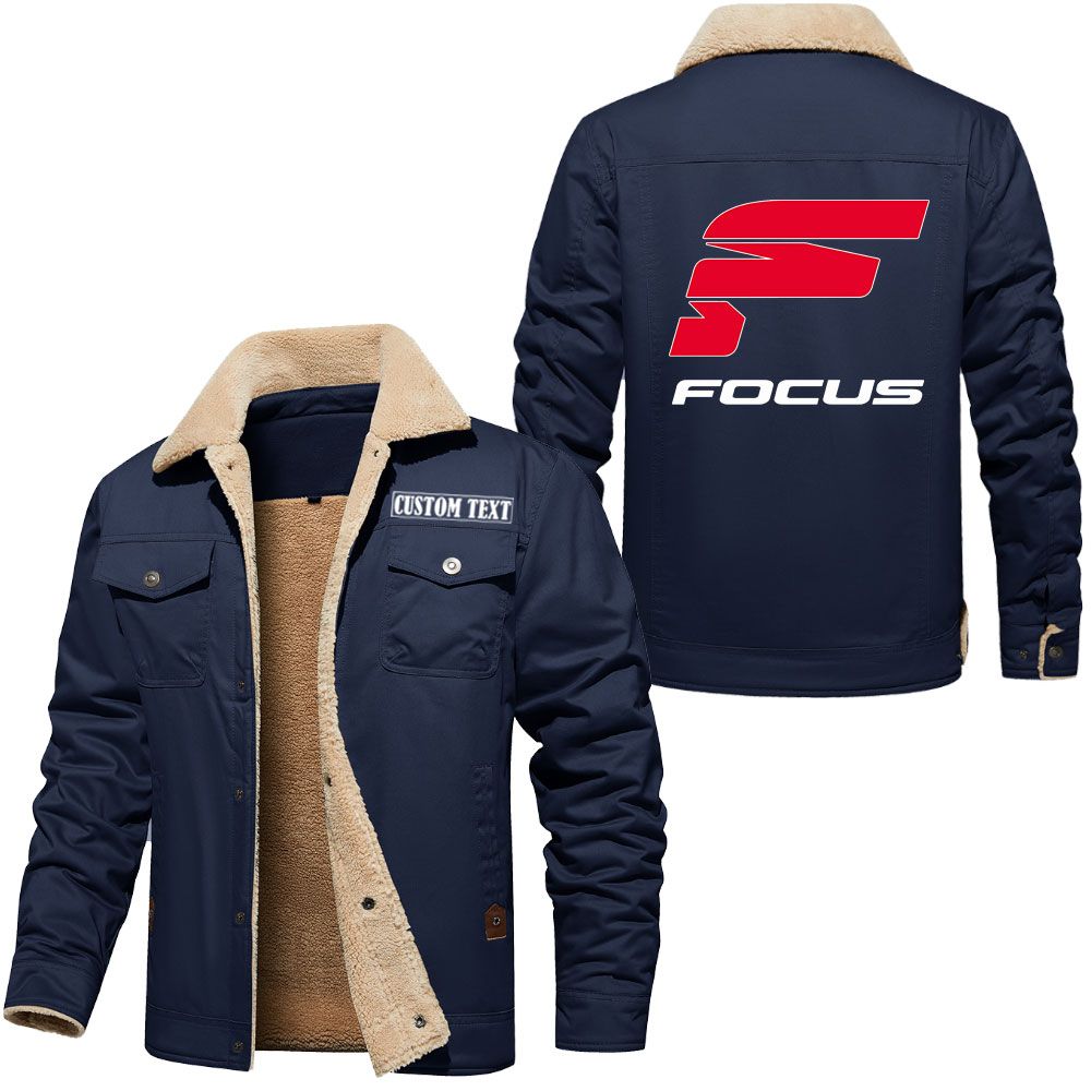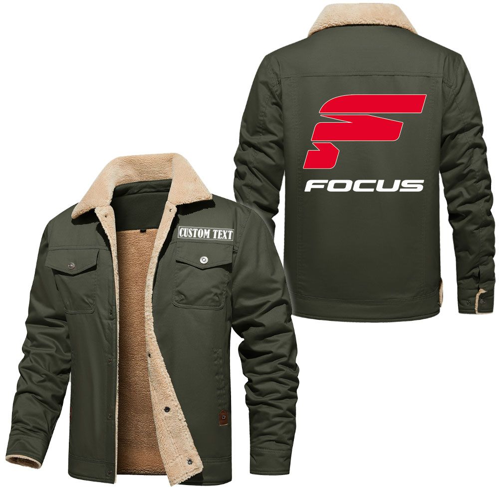 FOCUS Bikes Logo Custom Name Cargo Fleece Lined Cotton Jacket Stylish Warm Personalized Outerwear