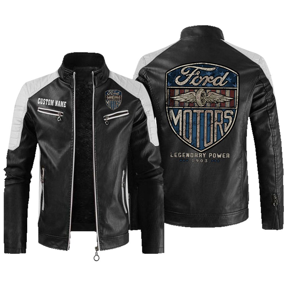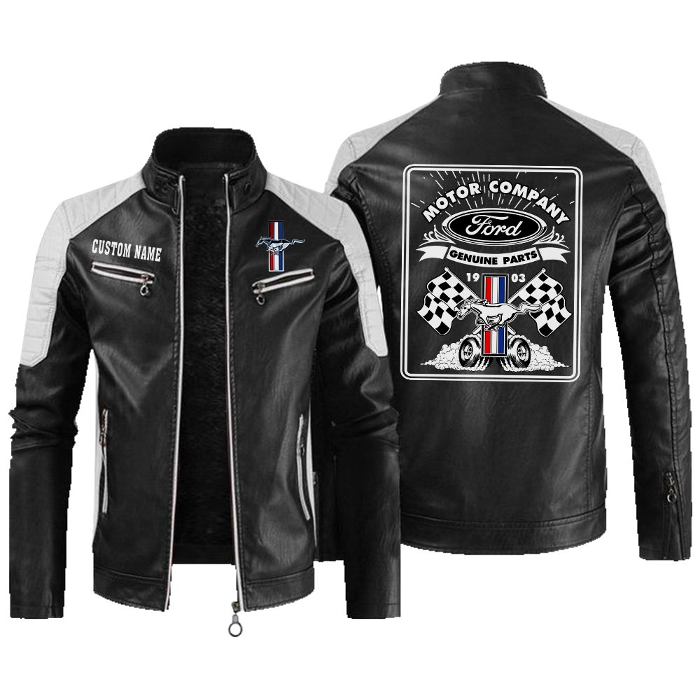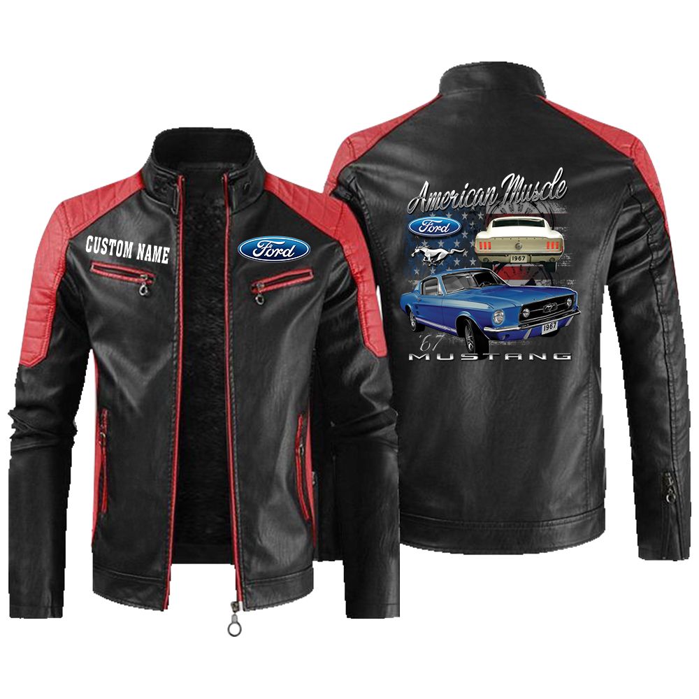 Ford American Muscle Mustang Ford Motor Company Custom Leather Biker Jacket