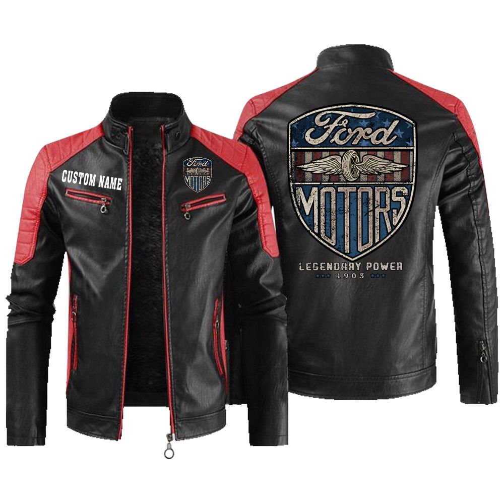 Ford Legendary Power 1903 Ford Motor Company Vintage Custom Leather Biker Jacket