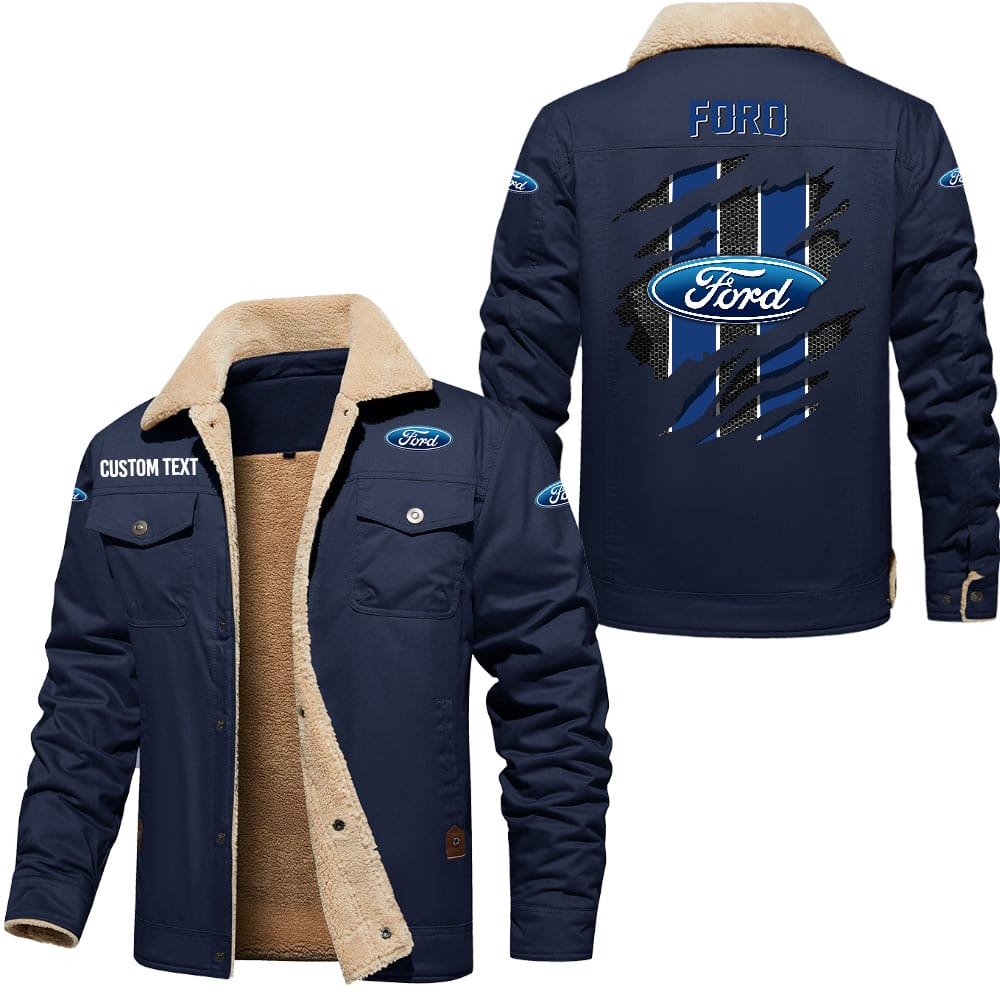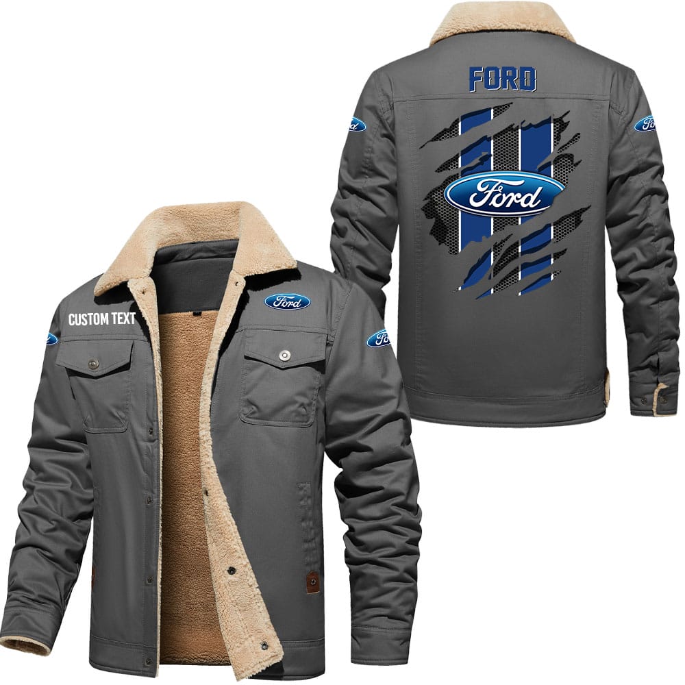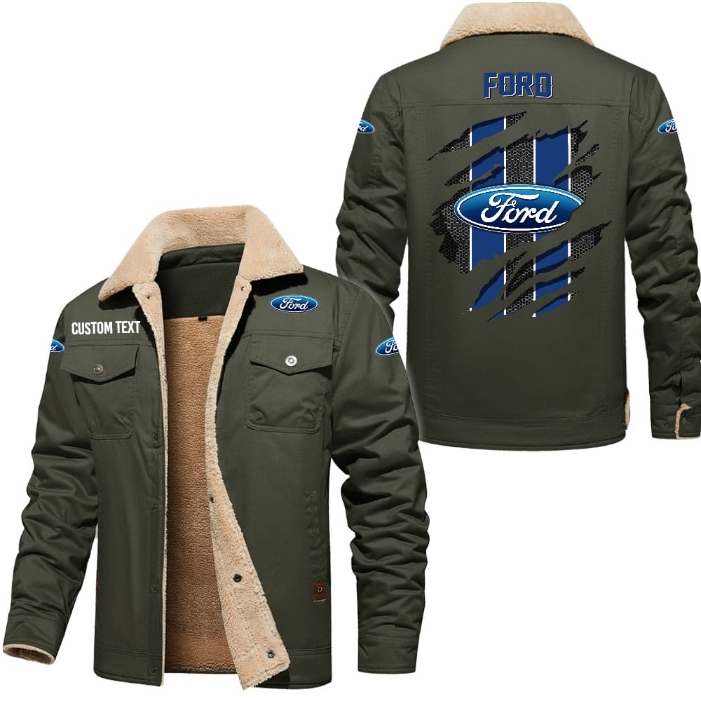 Ford Logo Custom Name Cargo Fleece Lined Cotton Jacket