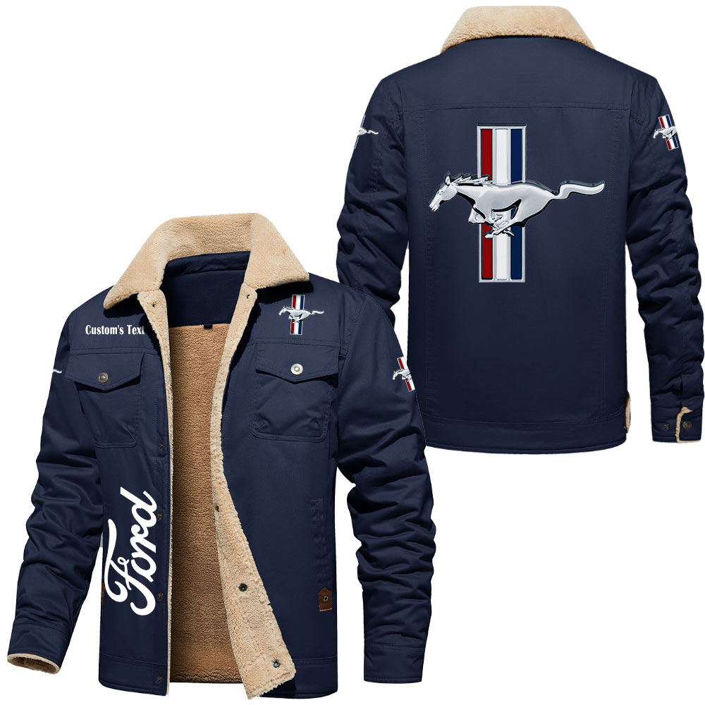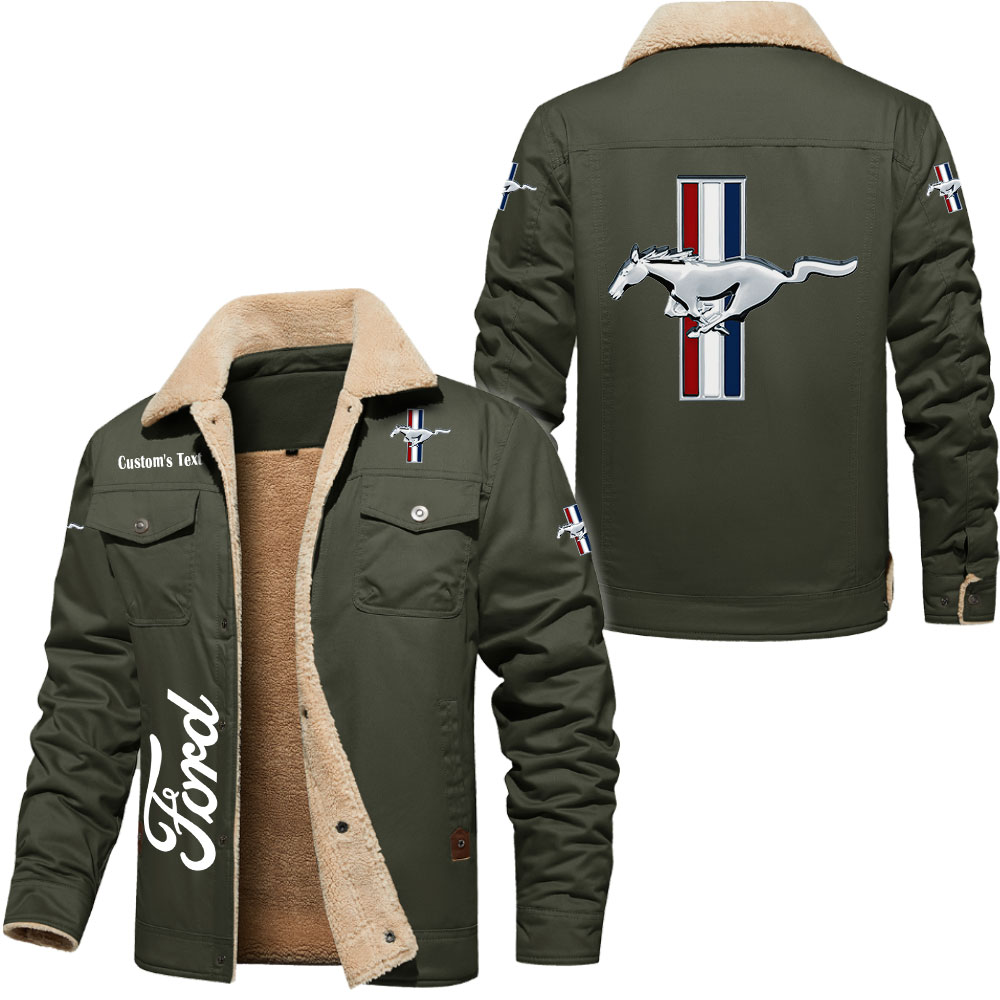 Ford Motor Company Logo Custom Text Cargo Fleece Lined Cotton Jacket