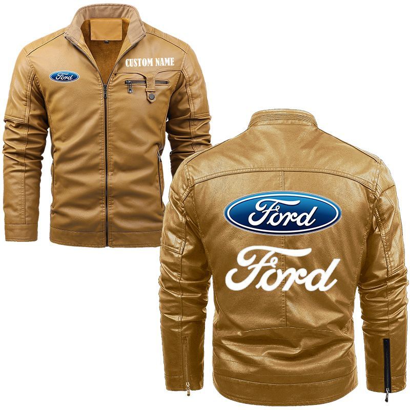 Ford Motor Company Zip Pocket Fleece Leather Jacket
