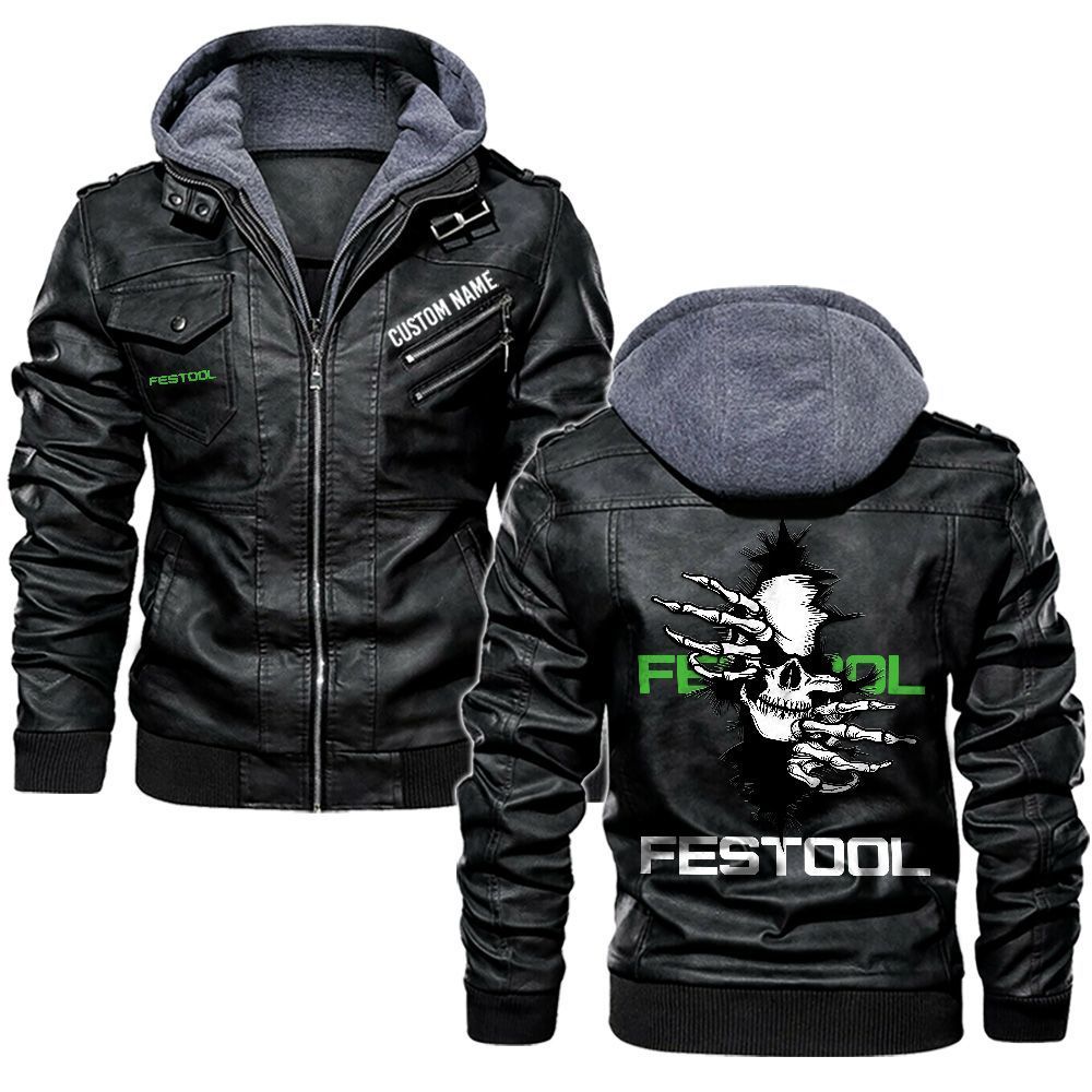 Ford Motor Custom Name Skull Biker Car Driver Personalized Hooded Leather Jacket For Men Women