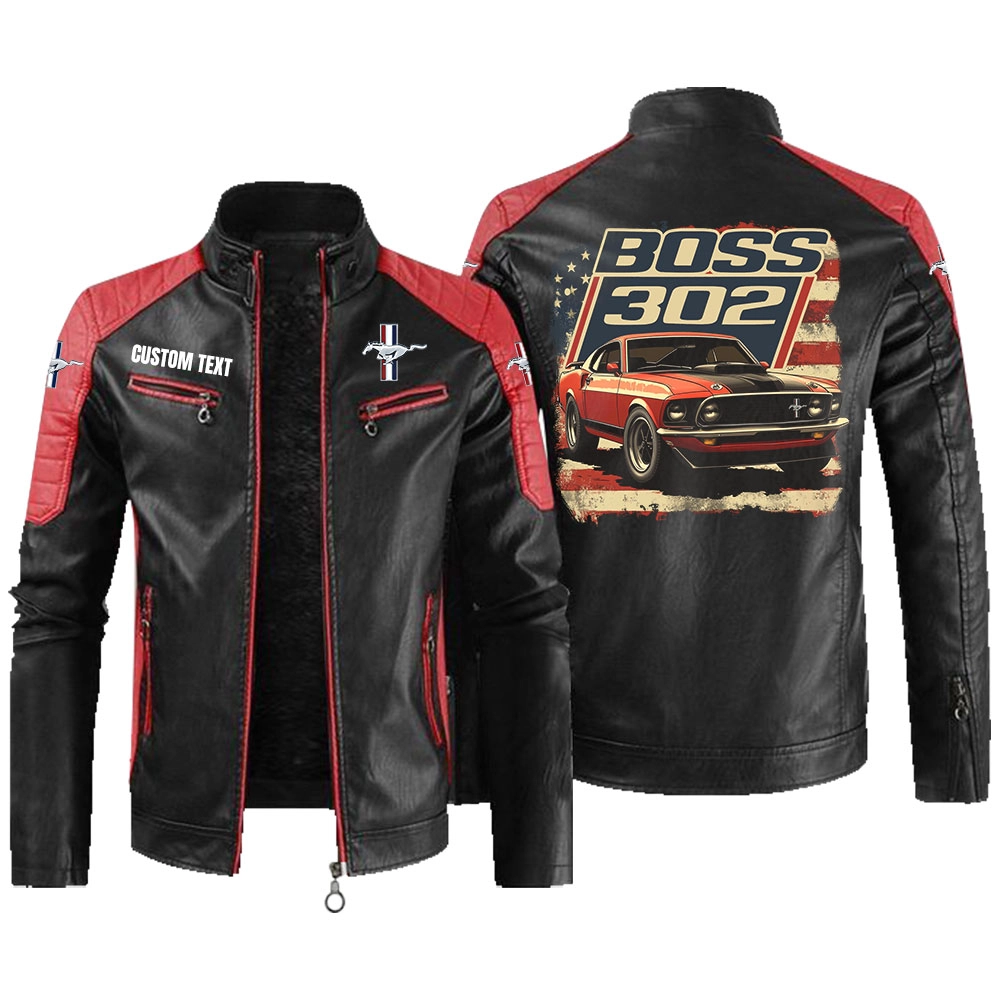Ford Mustang Boss 302 Leather Biker Jacket Custom Name And Logo