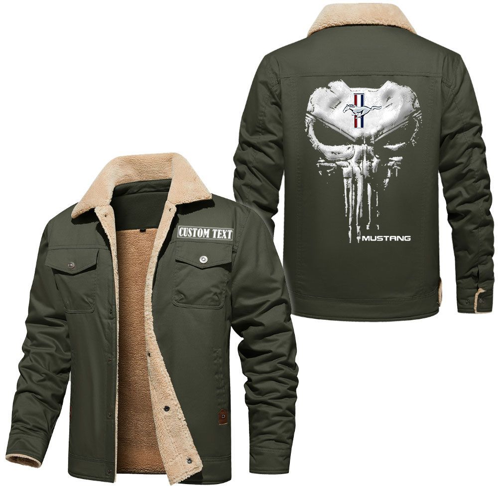 Ford Mustang Logo Custom Name Cargo Fleece Lined Cotton Jacket Personalized Outerwear with Punisher Skull Design