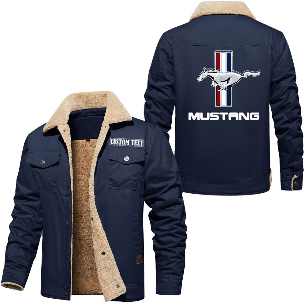 Ford Mustang Logo Custom Name Cargo Fleece Lined Cotton Jacket Stylish Warm Personalized Outerwear