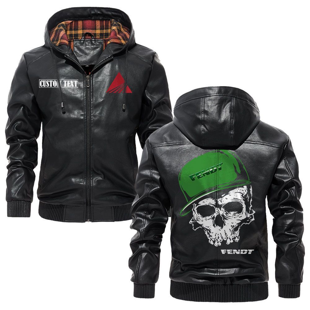 Ford Mustang Logo Custom Name Leather Hoodie Jacket Warm Outerwear with Skull Design