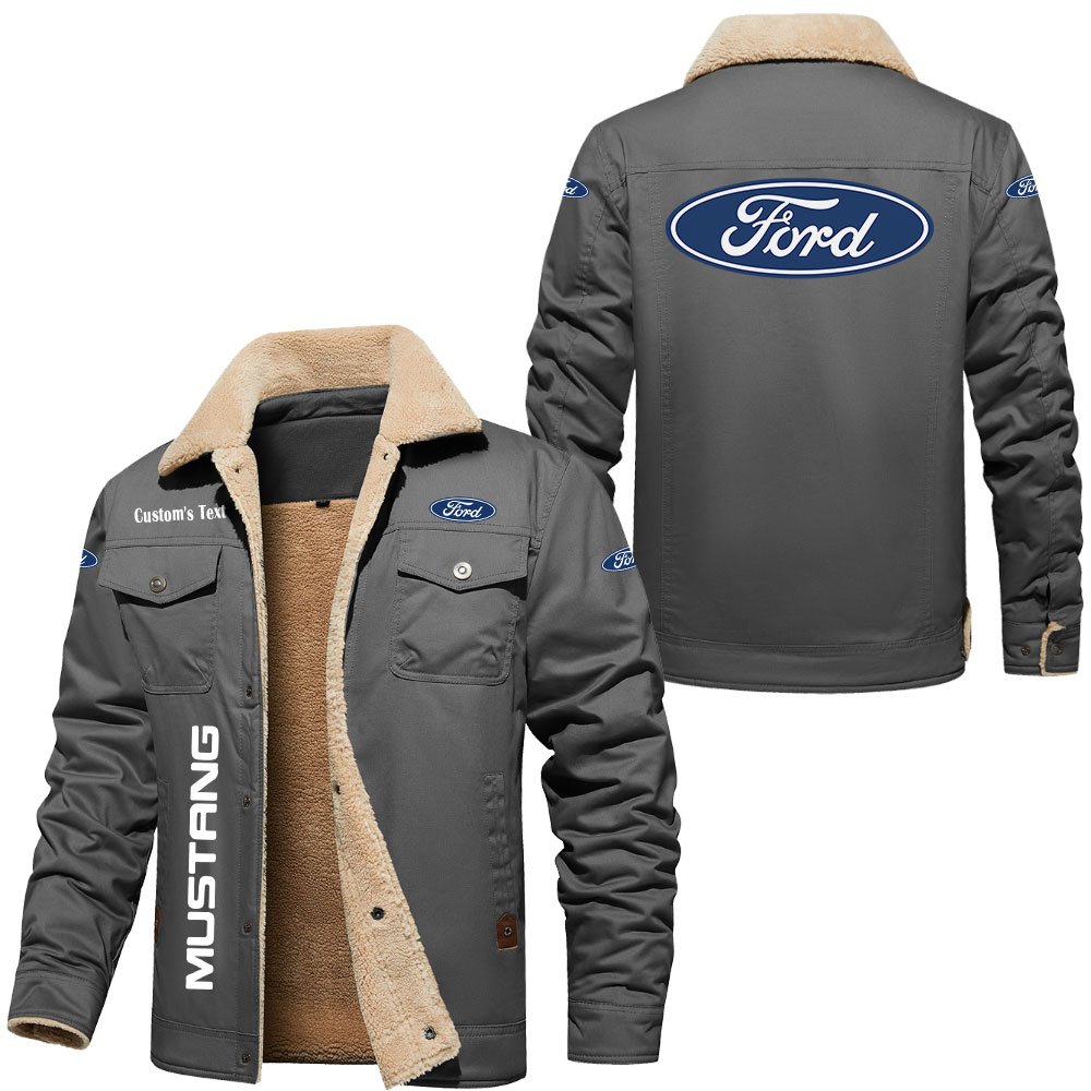 Ford Mustang Logo Custom Text Cargo Fleece Lined Cotton Jacket