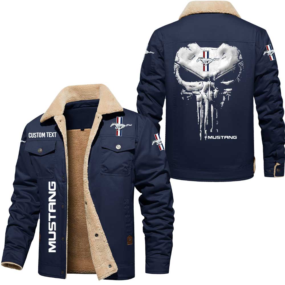 Ford Mustang Logo Skull Design Custom Text Cargo Fleece Lined Cotton Jacket