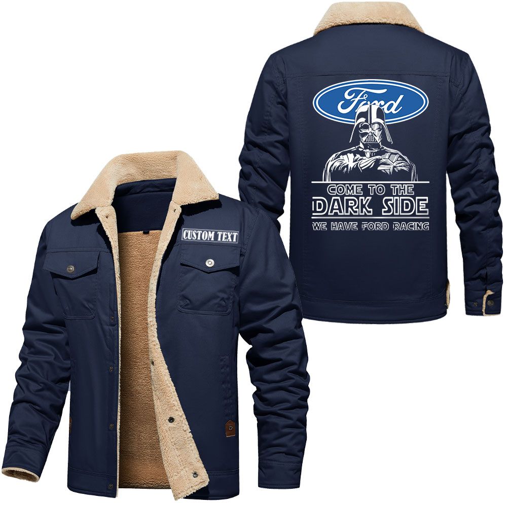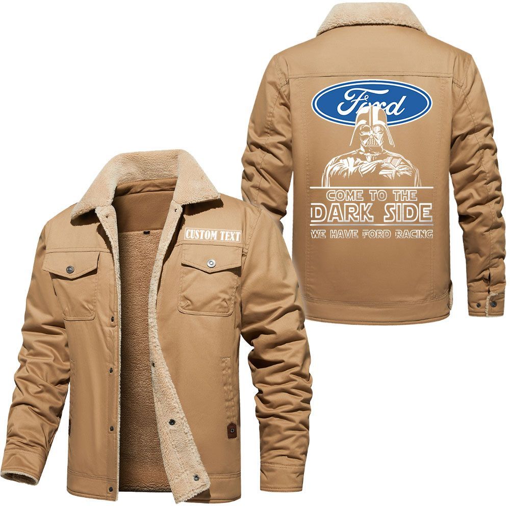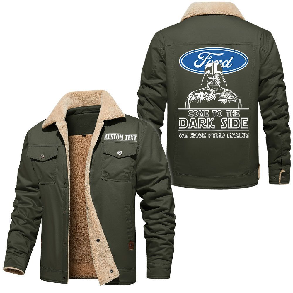 Ford Racing Logo Custom Name Cargo Fleece Lined Cotton Jacket Personalized Outerwear with Dark Side Star Wars Design