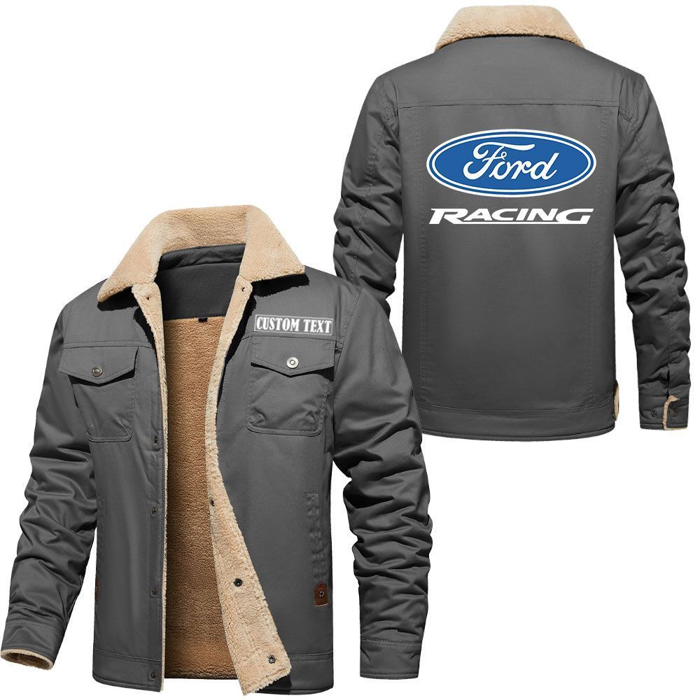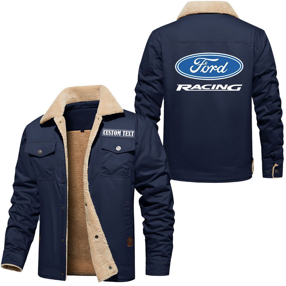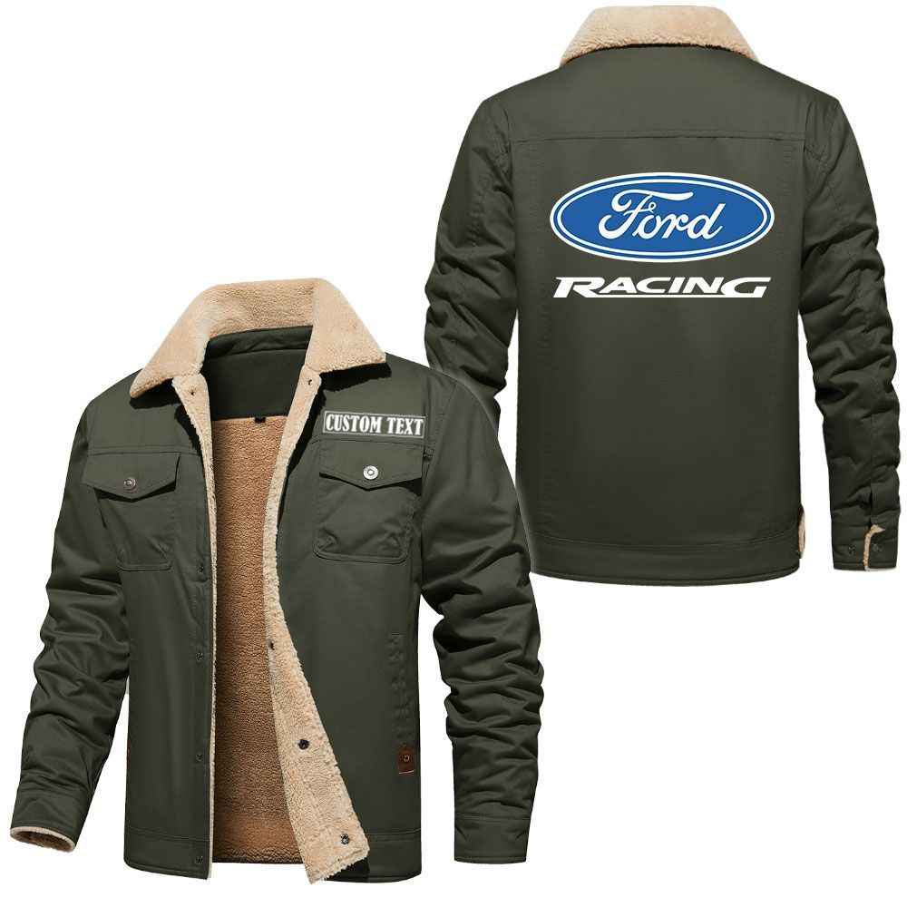 Ford Racing Logo Custom Name Cargo Fleece Lined Cotton Jacket Stylish Warm Personalized Outerwear