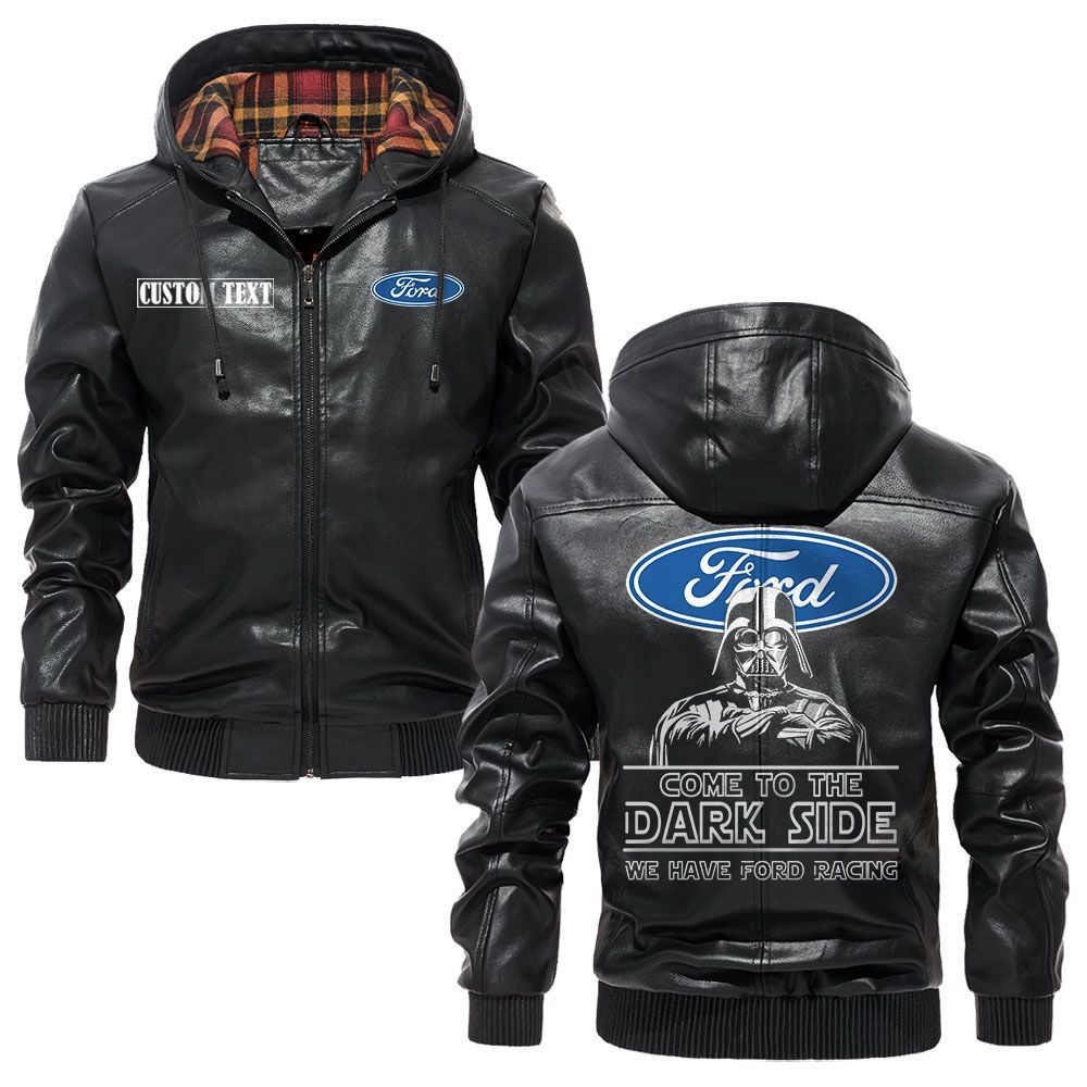 Ford Racing Logo Custom Name Leather Hoodie Jacket Warm Outerwear with Star Wars Theme