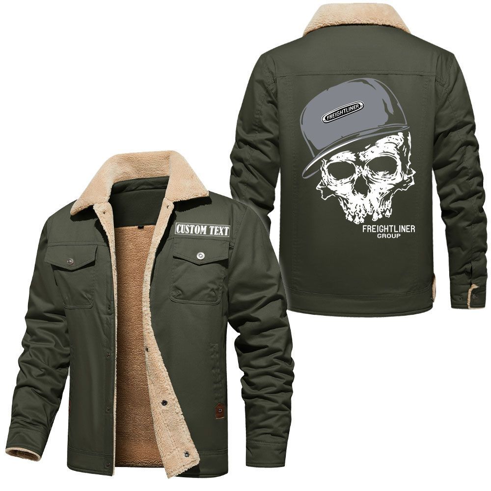 Freightliner Group Logo Custom Name Cargo Fleece Lined Cotton Jacket Personalized Outerwear with Skull Design