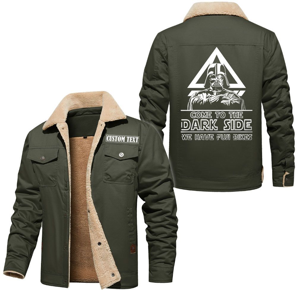 Fuji Bikes Logo Custom Name Cargo Fleece Lined Cotton Jacket Personalized Outerwear with Dark Side Star Wars Design
