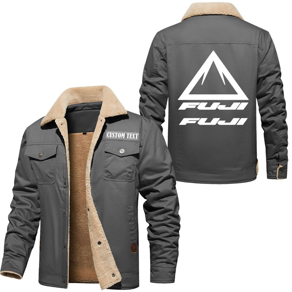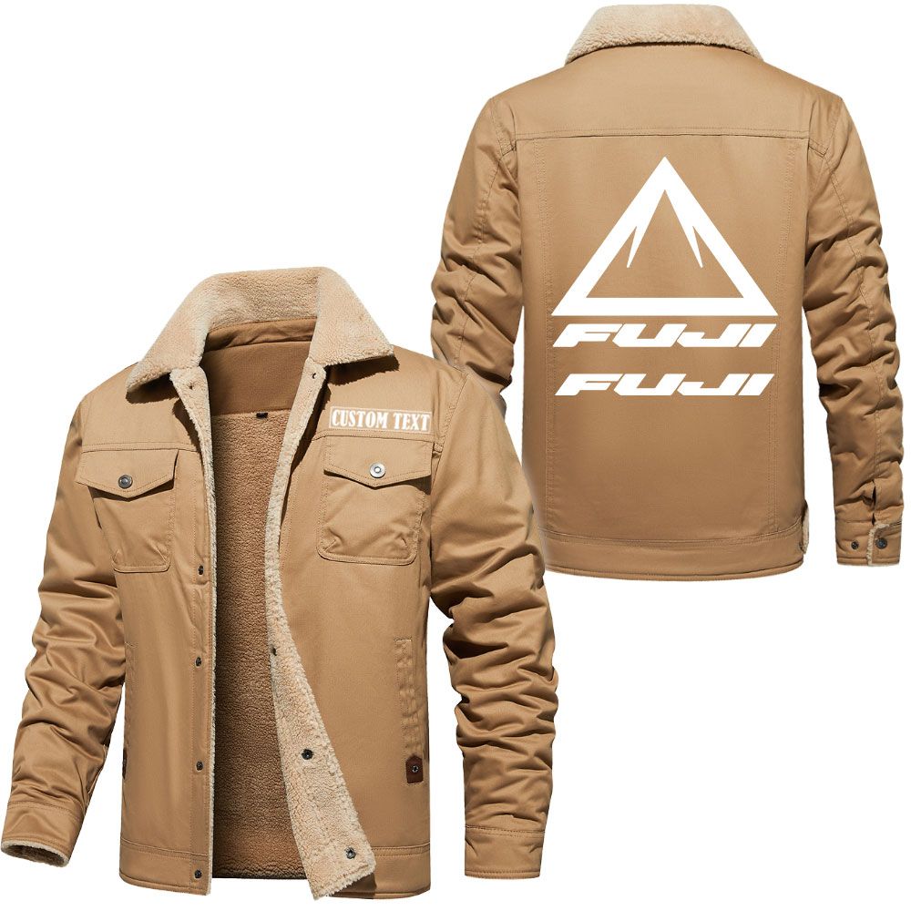 Fuji Bikes Logo Custom Name Cargo Fleece Lined Cotton Jacket Stylish Warm Personalized Outerwear