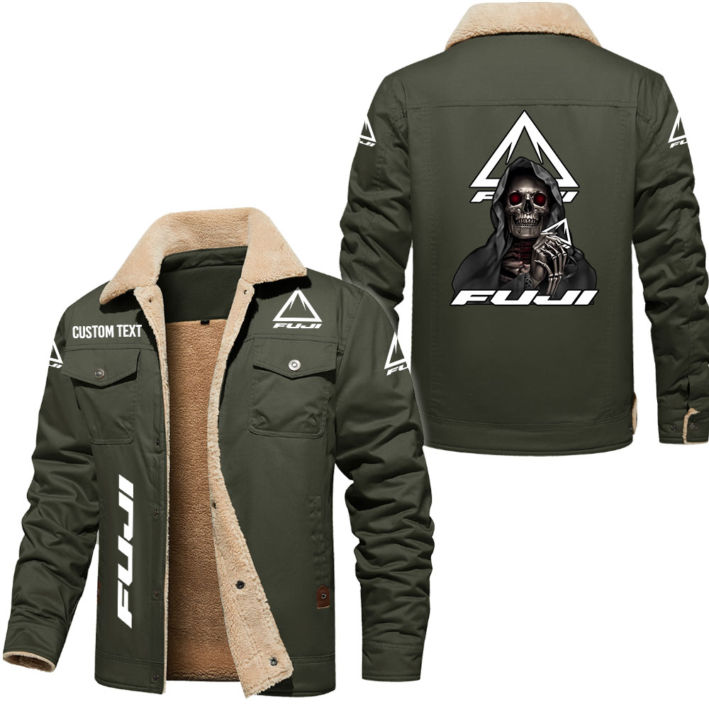 Fuji Bikes Skull Art Print Custom Name Cargo Fleece Lined Cotton Jacket