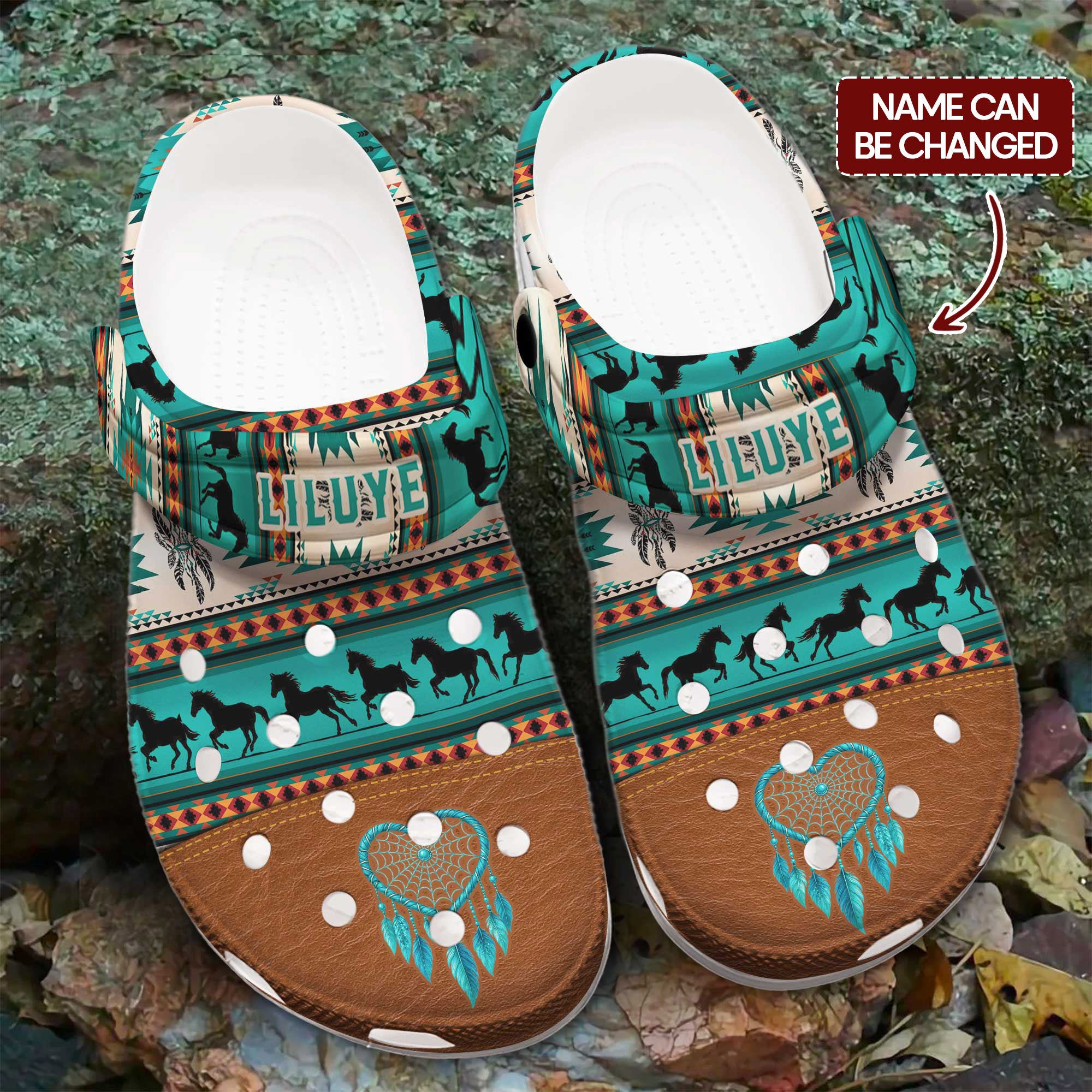 Galloping Horses & Dreamcatcher Motif Custom Crocs And Clogs Shoes Printed For Men Women And Kids