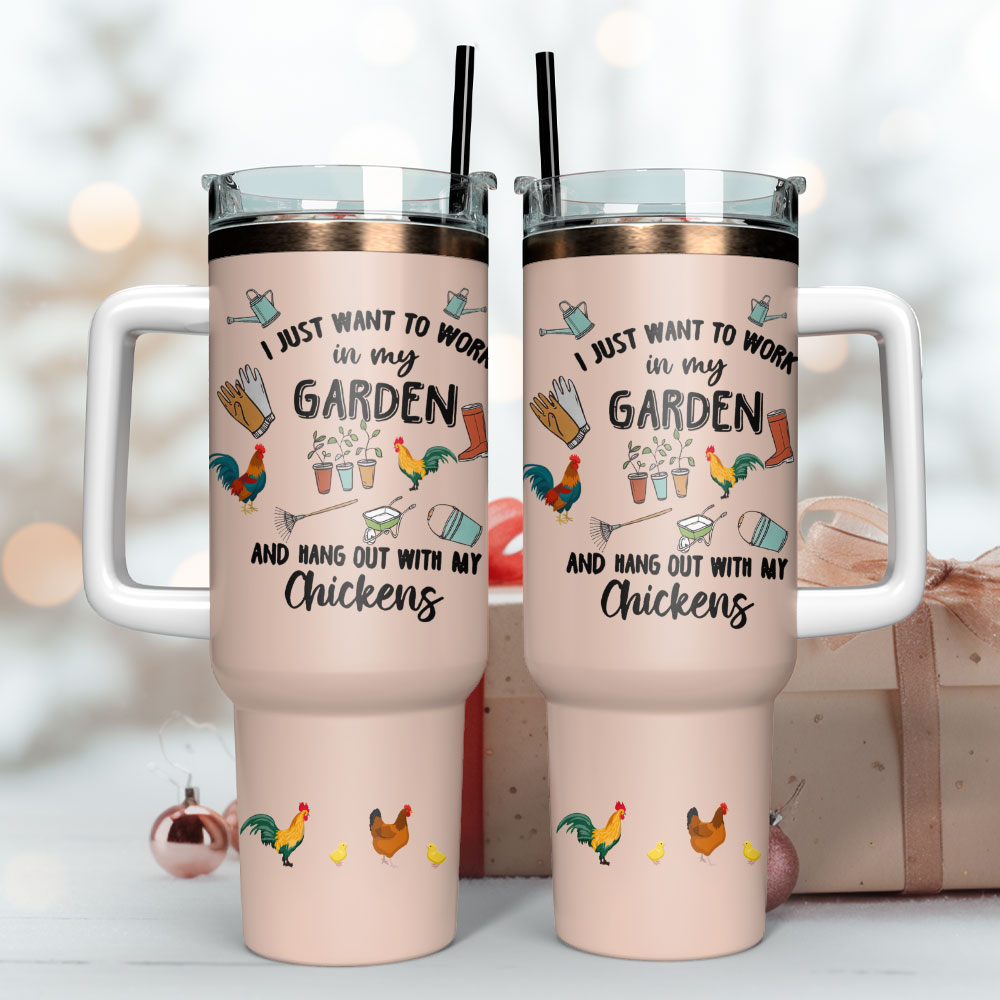 Garden Chicken Sketch Artwork Custom Stanley Quencher 40Oz Stainless Steel Tumbler With Handle