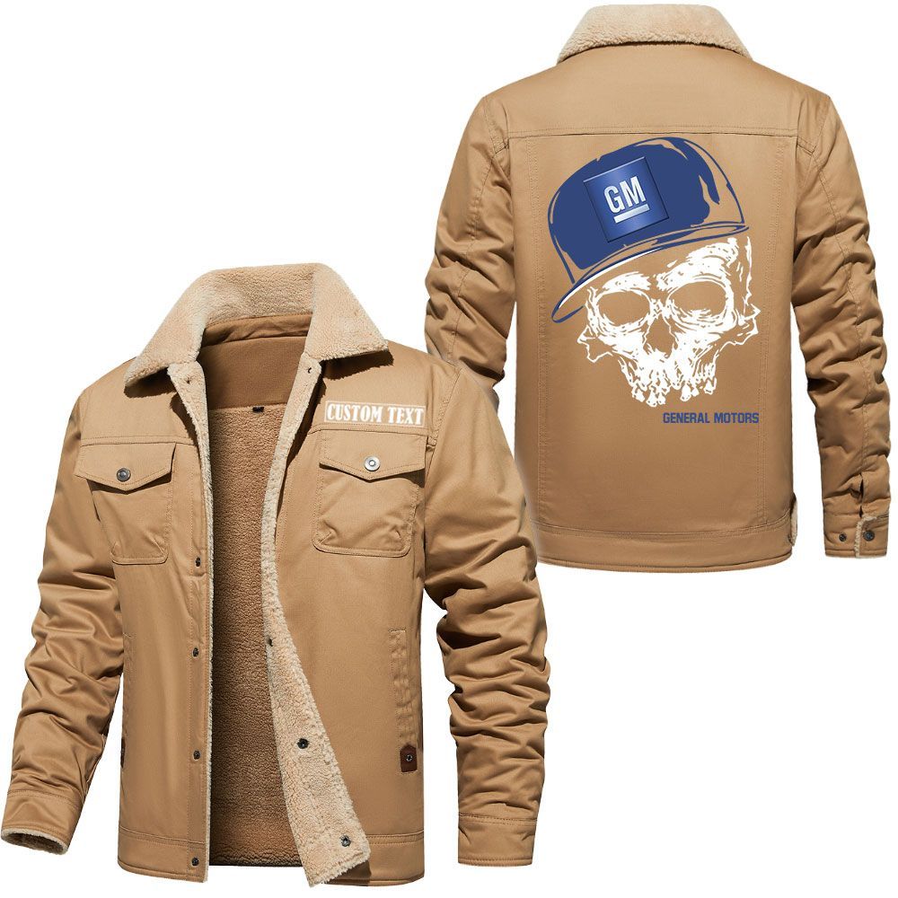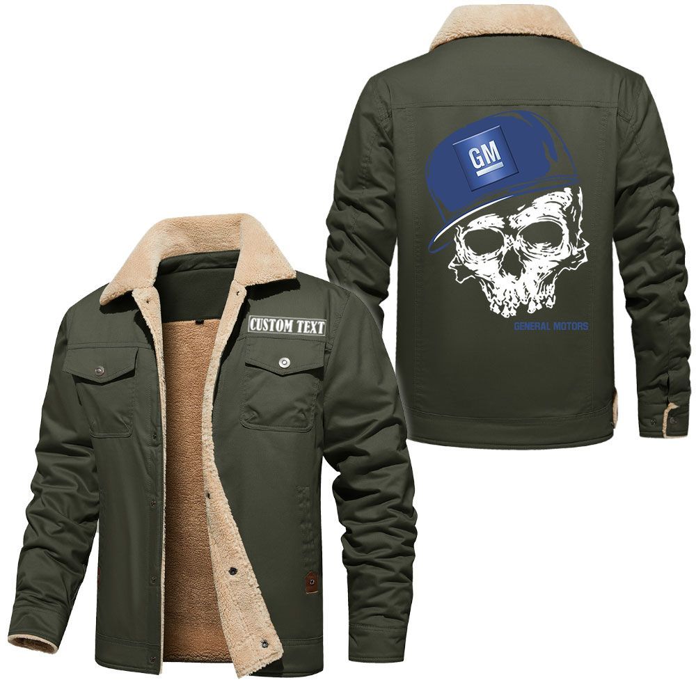 General Motors Logo Custom Name Cargo Fleece Lined Cotton Jacket Personalized Outerwear with Skull Design