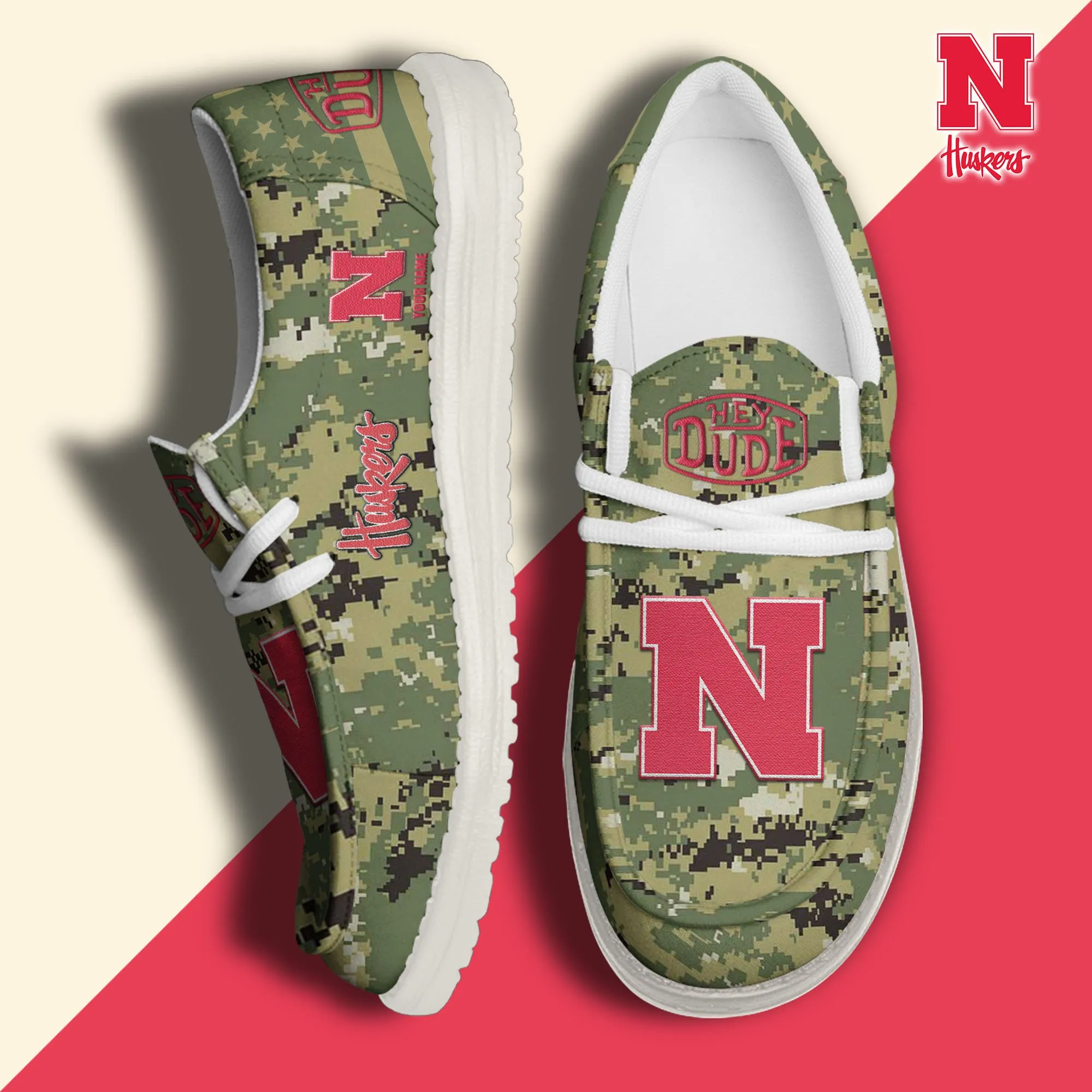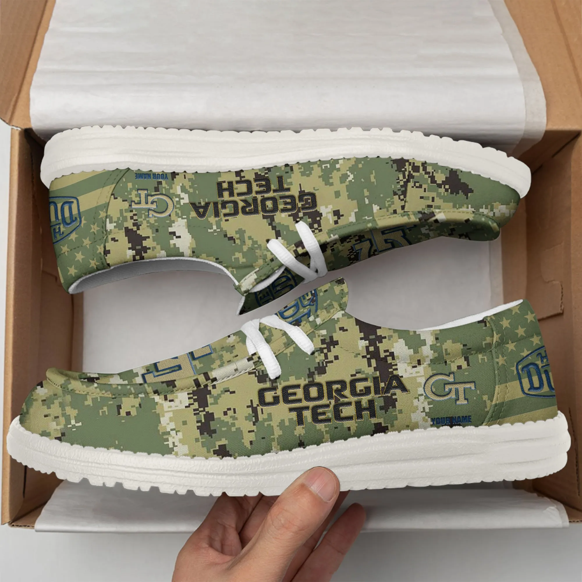Georgia Tech Yellow Jackets 3D Print Dude Shoes Camo Green Best Gift For Sport Fan