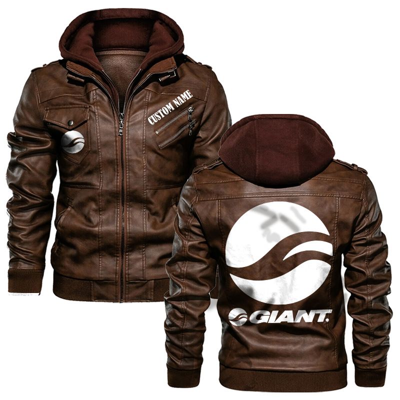 Giant Bicycles Hooded Leather Jacket For Men Women
